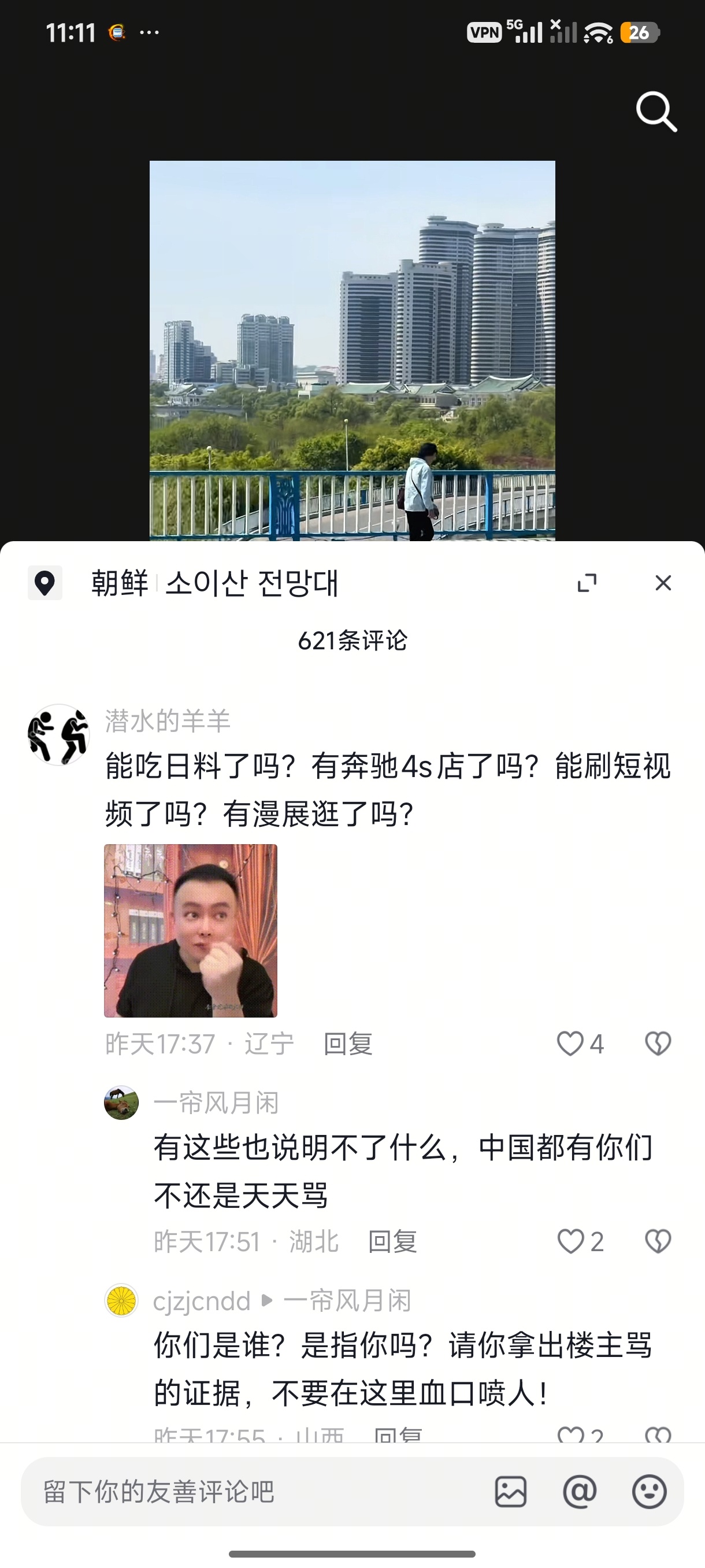当朝鲜的社会发展脱离了某些人的刻板印象的时候,他们又会说啊,你吃得起日料吗?你开得起奔驰吗?你逛得起漫展吗?你刷得起短视频吗?如果真是这样的话,别人背地里骂你修骂你帝,你也别急赤白脸的哈气不就完了吗?对吧?自己都玩下流了,还装什么高风亮节?