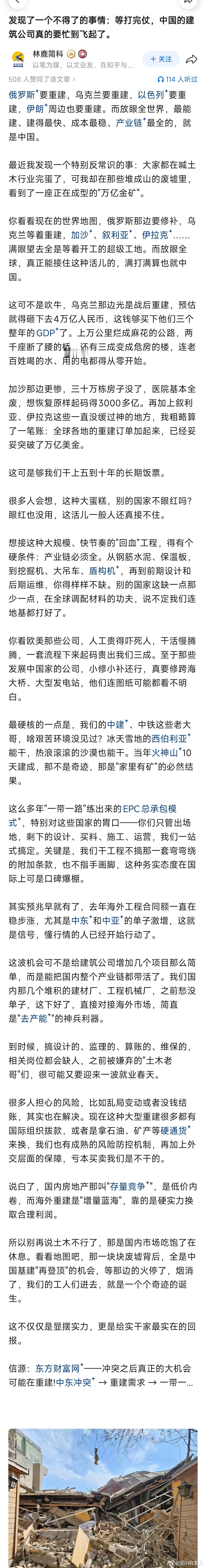 发现一个不得了的事情:等打完仗,中国的建筑公司要起飞了?