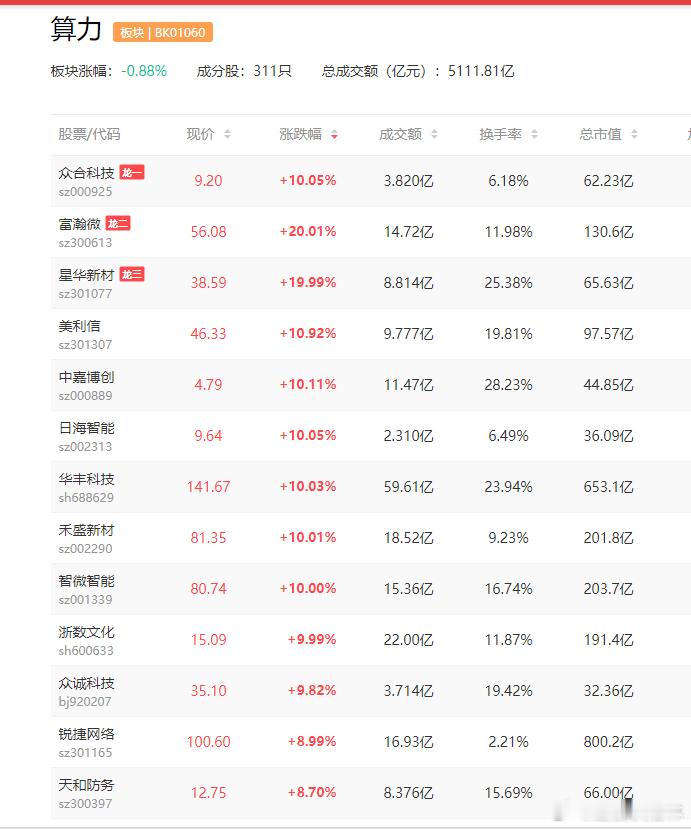 随后昇腾超节点和寒武纪均宣布与Deepseek-V4适配、国产算力产业链盘中逆势爆发,算力芯片概念海光信息、沐曦股份、摩尔线程均涨超5%,而华为算力概念深圳华强、远东传动、盛视科技以及阿里云概念浙数文化均报收涨停。