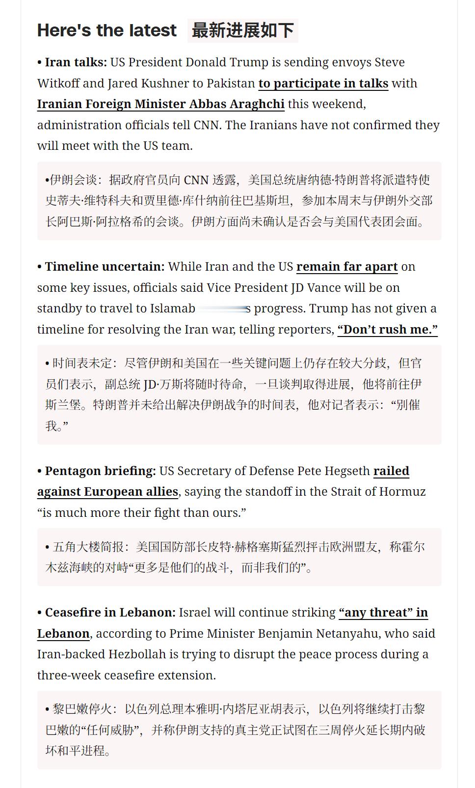 🔻石油价格下跌,因CNN说维特科夫和库什纳将前往巴基斯坦与阿拉克奇会面。🔻毕竟周五了。以色列总理证实患癌但已治疗特朗普说世界疯了成赌场了海外新鲜事中东现场直击
