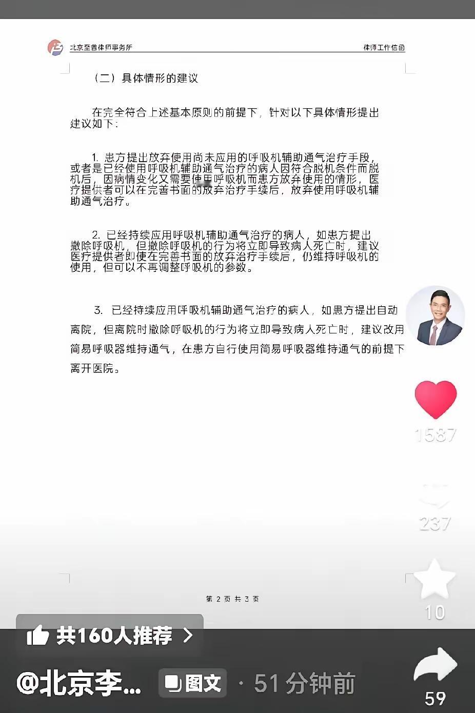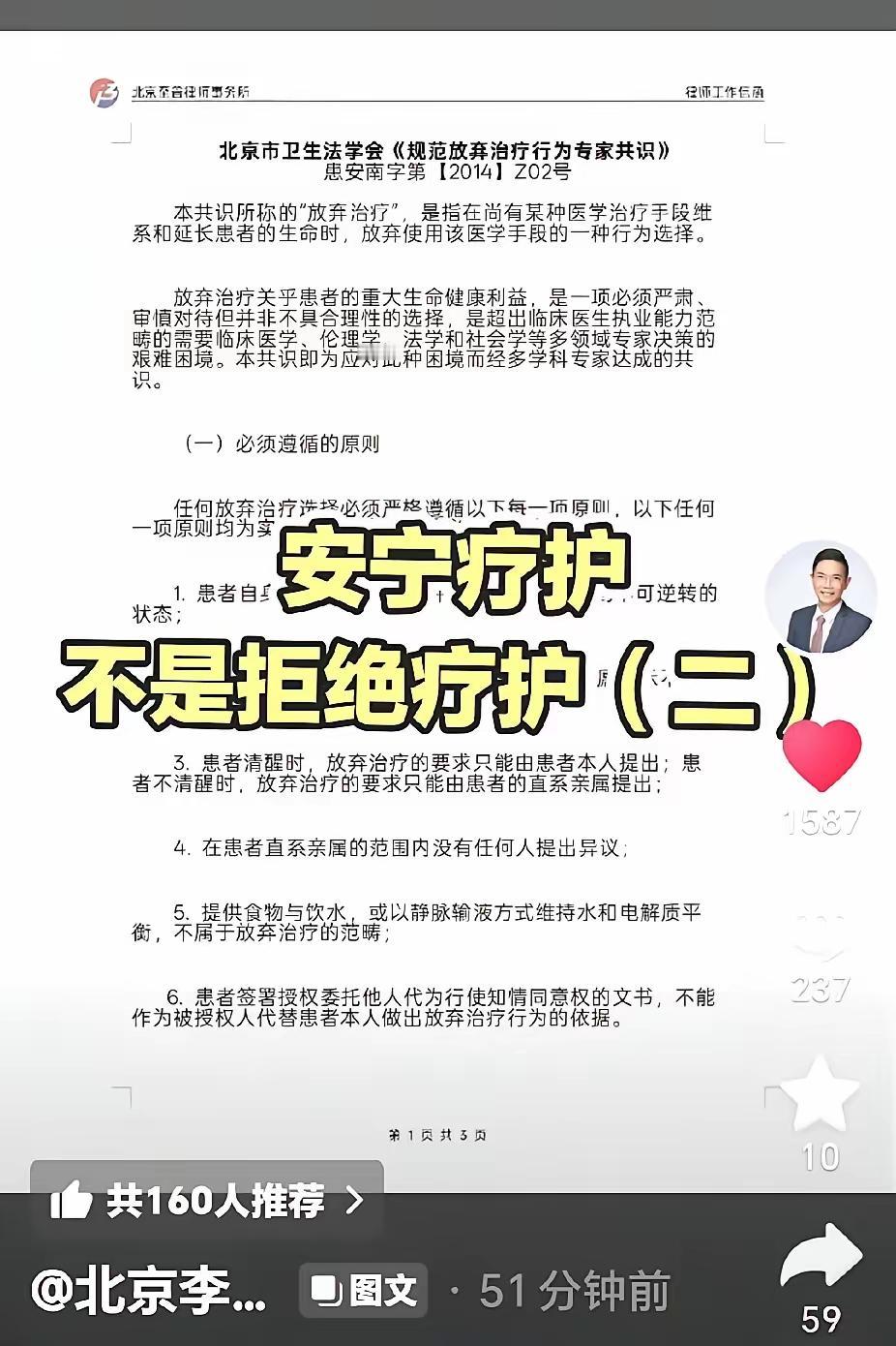 不再沉默,而是把有关事实亮出来,让大家明白当时的有关规定。许敏直播时,亮出了当时有关回执,李律也亮出了有关安宁医疗的规定。