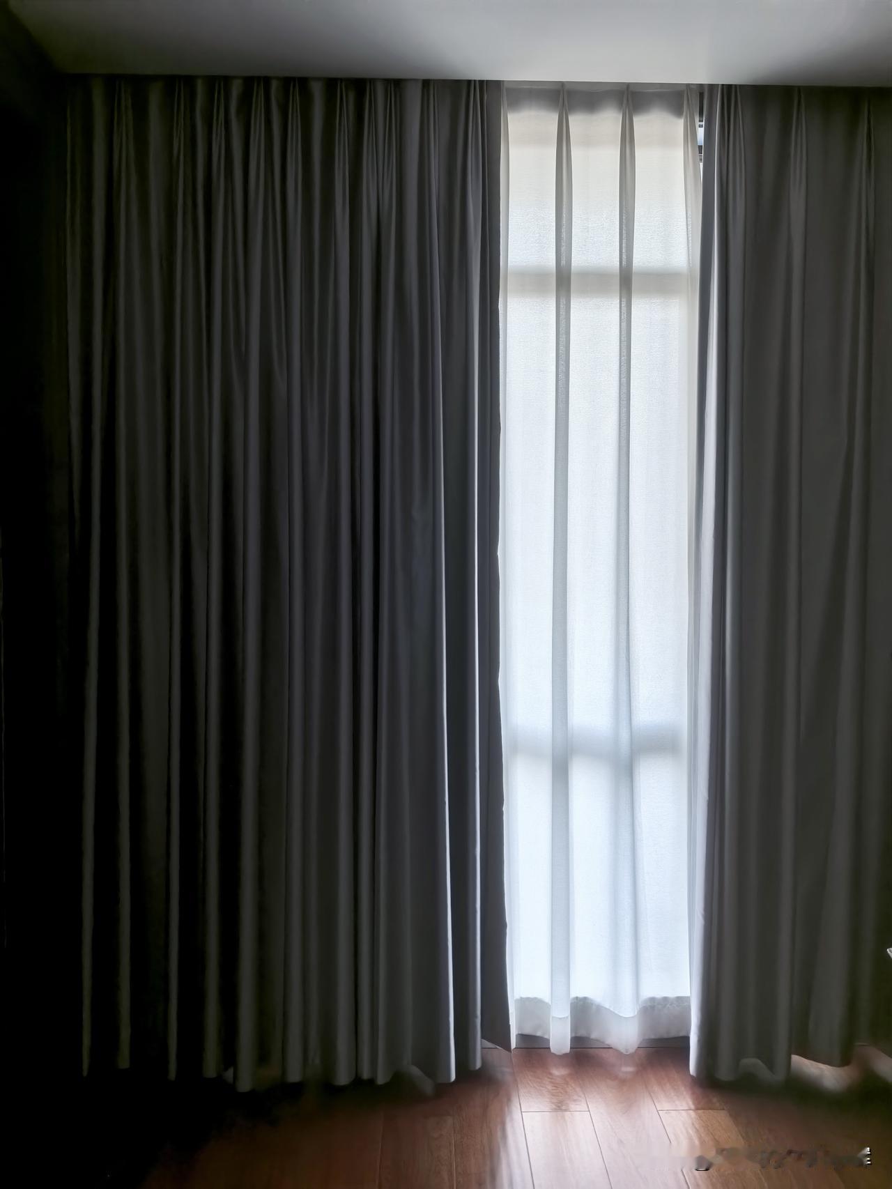 之前的窗帘没有遮光层,遮光效果欠佳,影响睡眠,特别是早上天很早就亮了。昨天我把在网上买的遮光衬布安装上了,效果还挺好。图一中间那层便是遮光衬布,图二是之前的窗帘,后面4张都是安装遮光布后的效果。