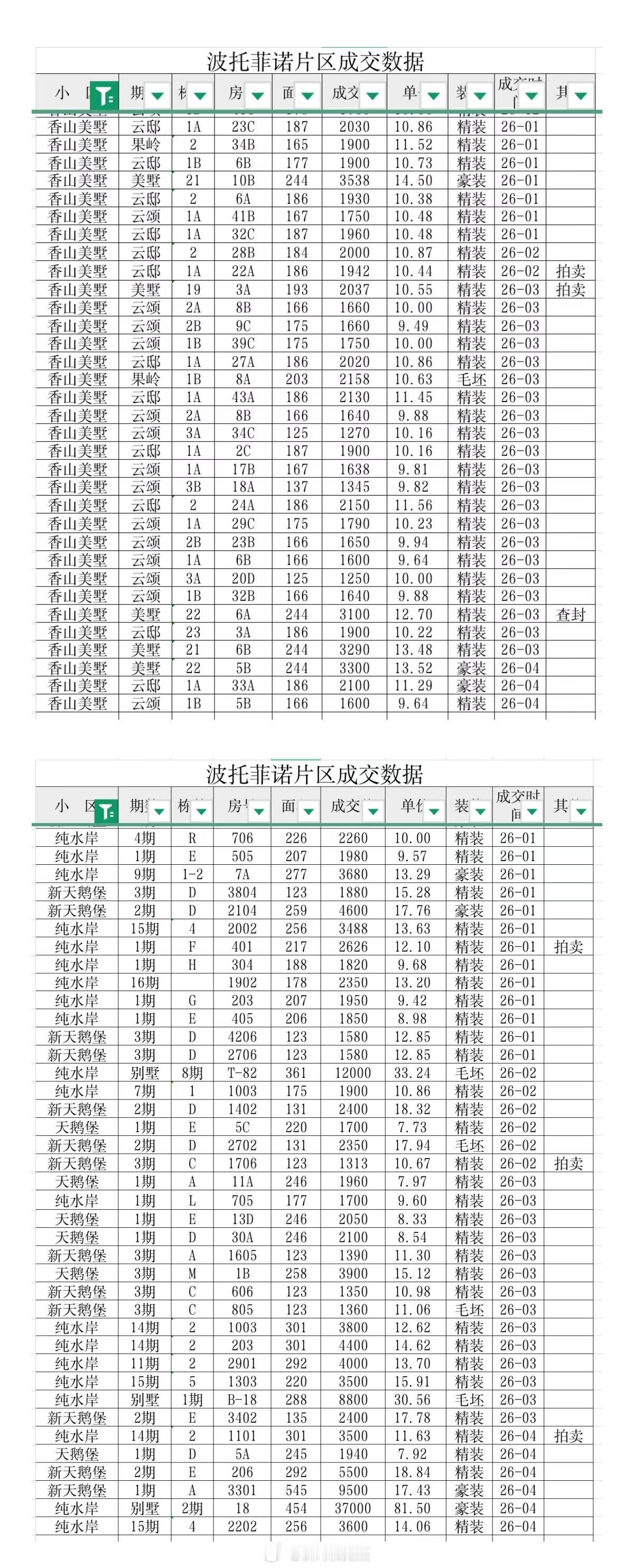 最新成交:壹瓶小区188平米7层签约价2200万
