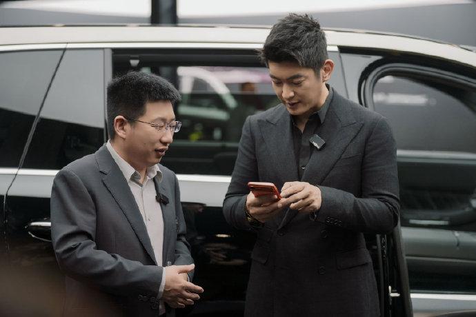 杜江里面穿黑色衬衣,外面套着黑色的西装,脚踩黑色皮鞋,看起来像个超帅气的国际大牌男模特。