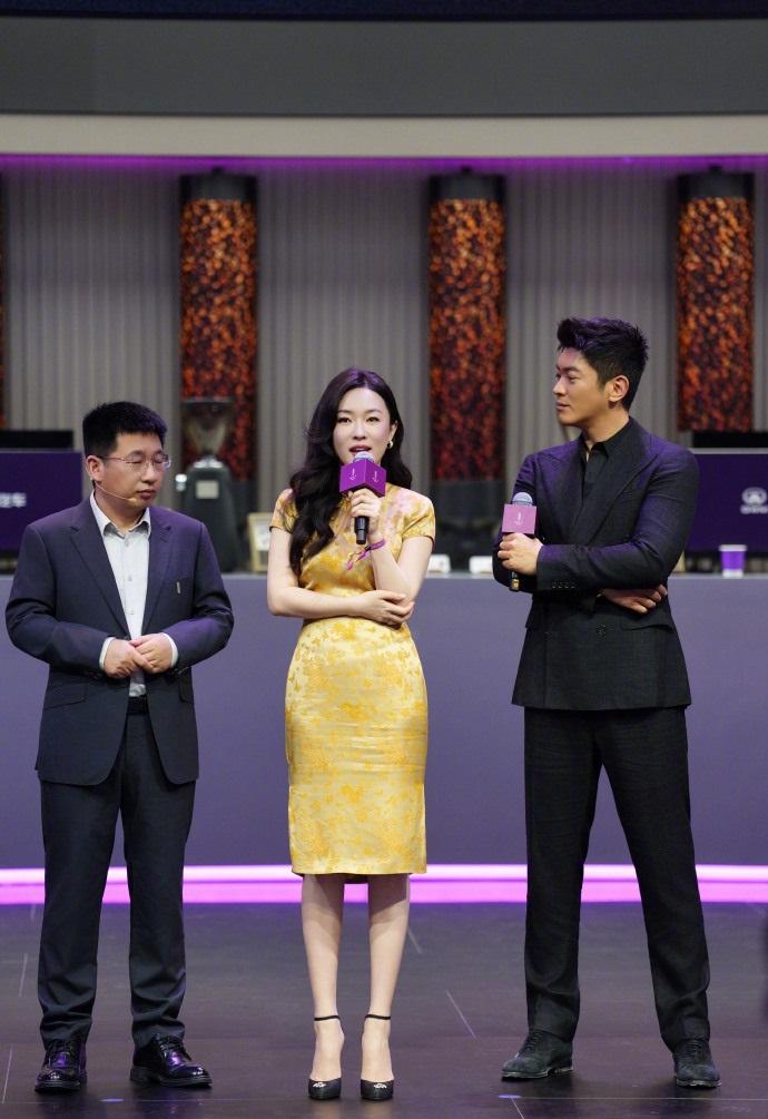 霍思燕穿了一件金色的绣花旗袍,穿上这件衣服之后能够让她秀出很好的身材曲线,尽显优雅之美,还有种大家闺秀的魅力。