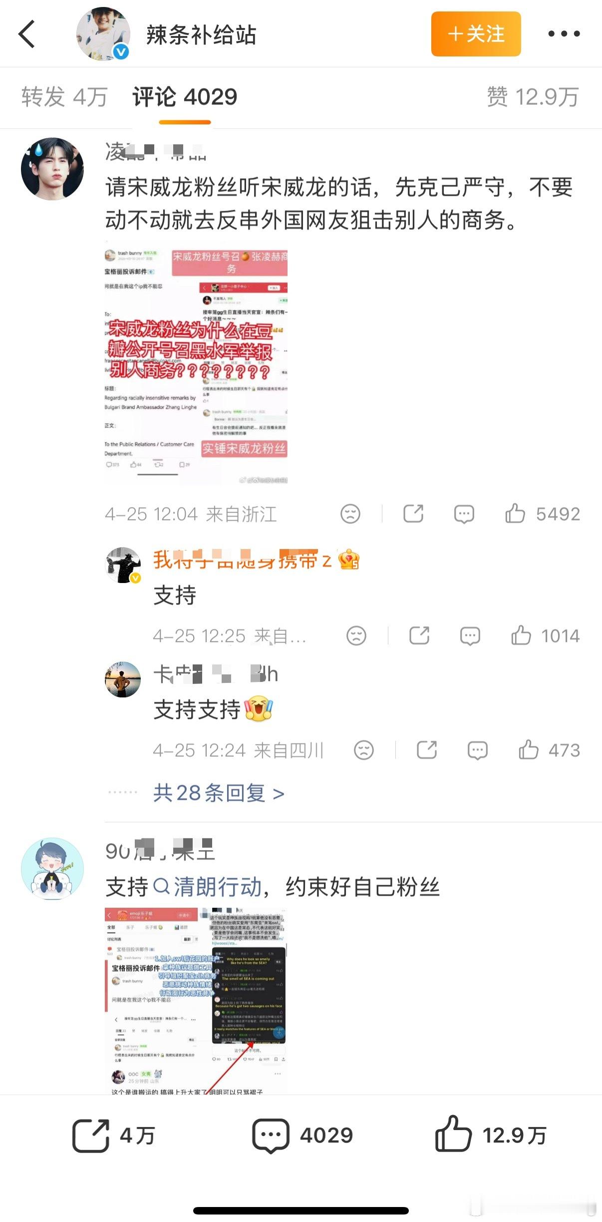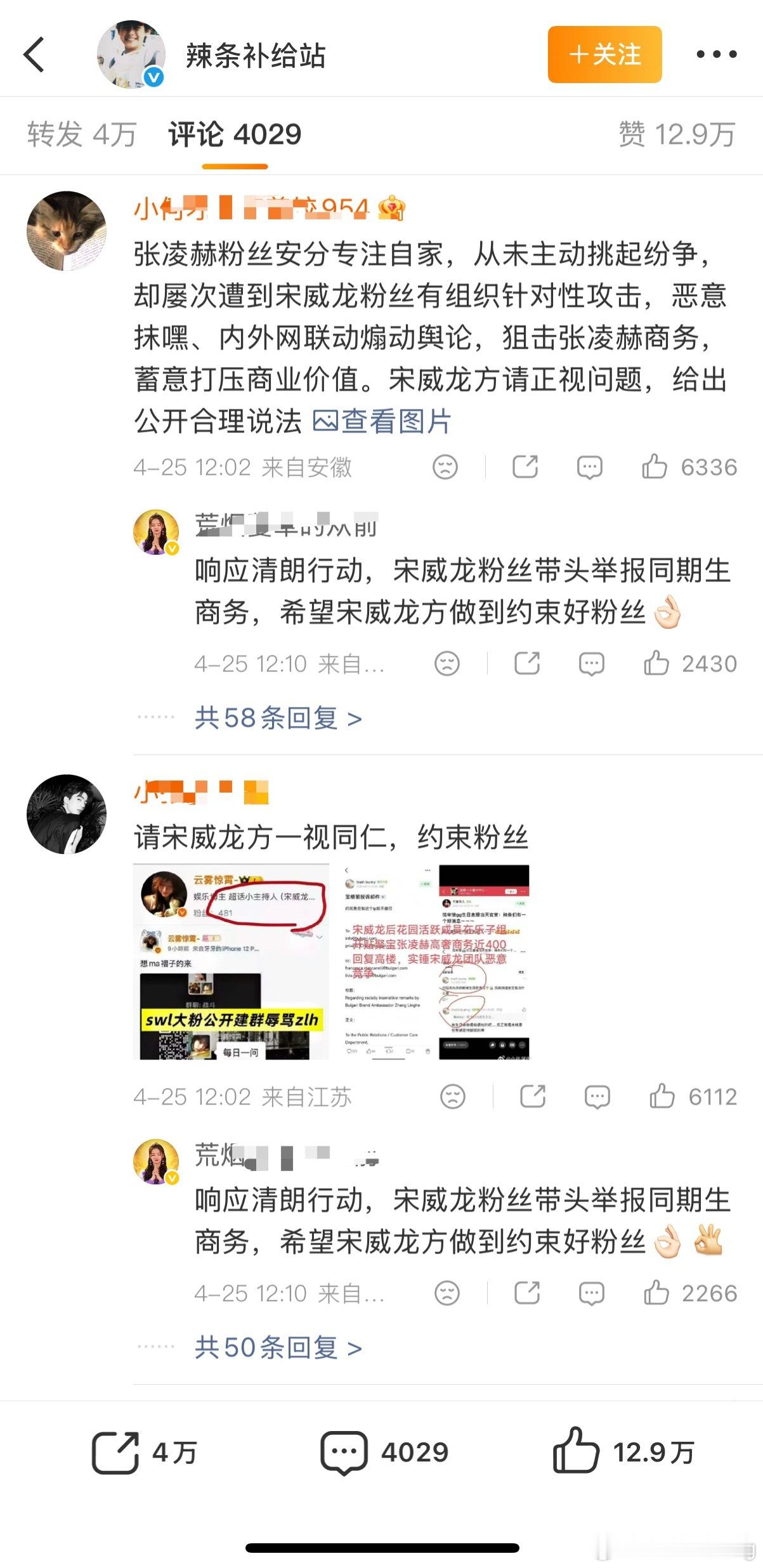 宋威龙对接发的维权博也都是张凌赫粉丝了……