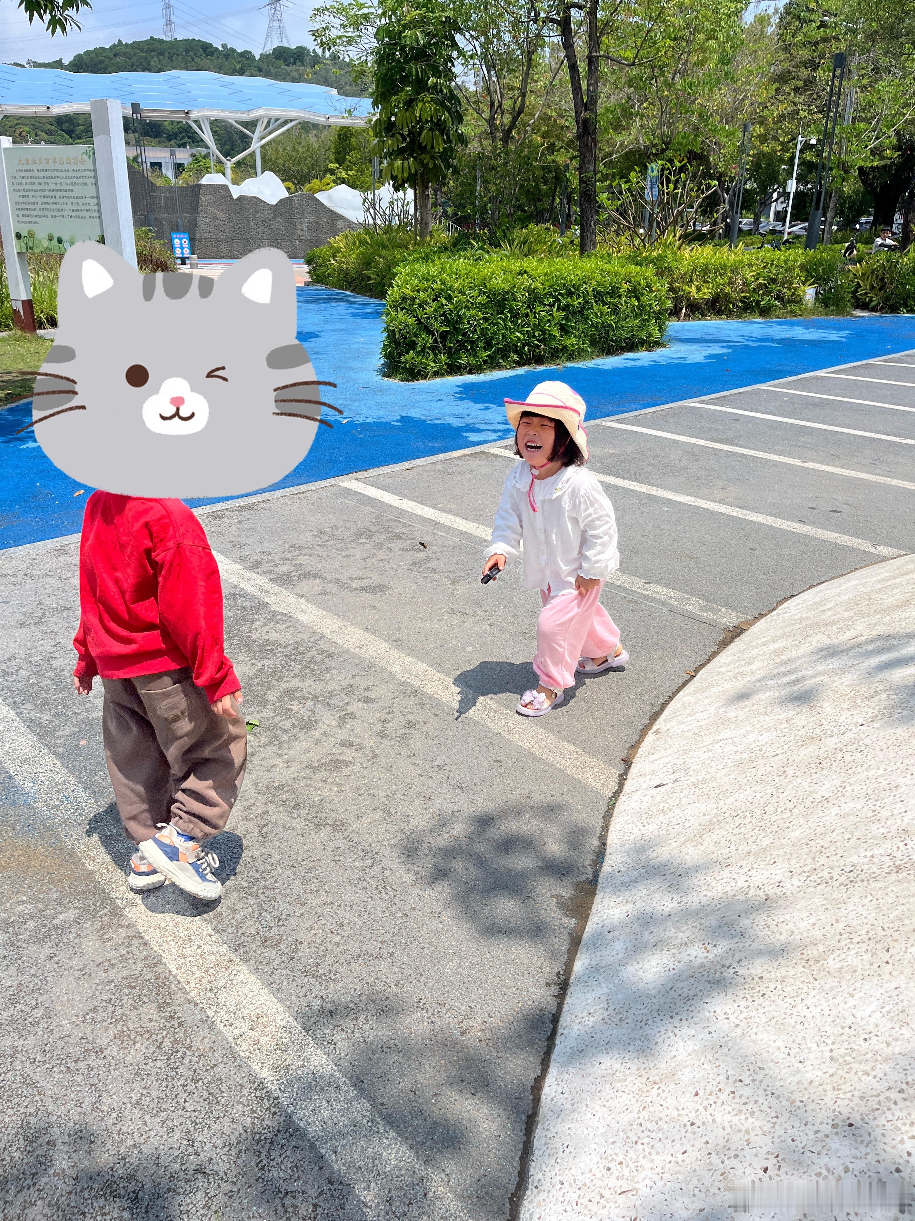在公园偶遇同学,好开心,玩到不肯回家,后面同学回家了,还追去看看,他到底有没有回