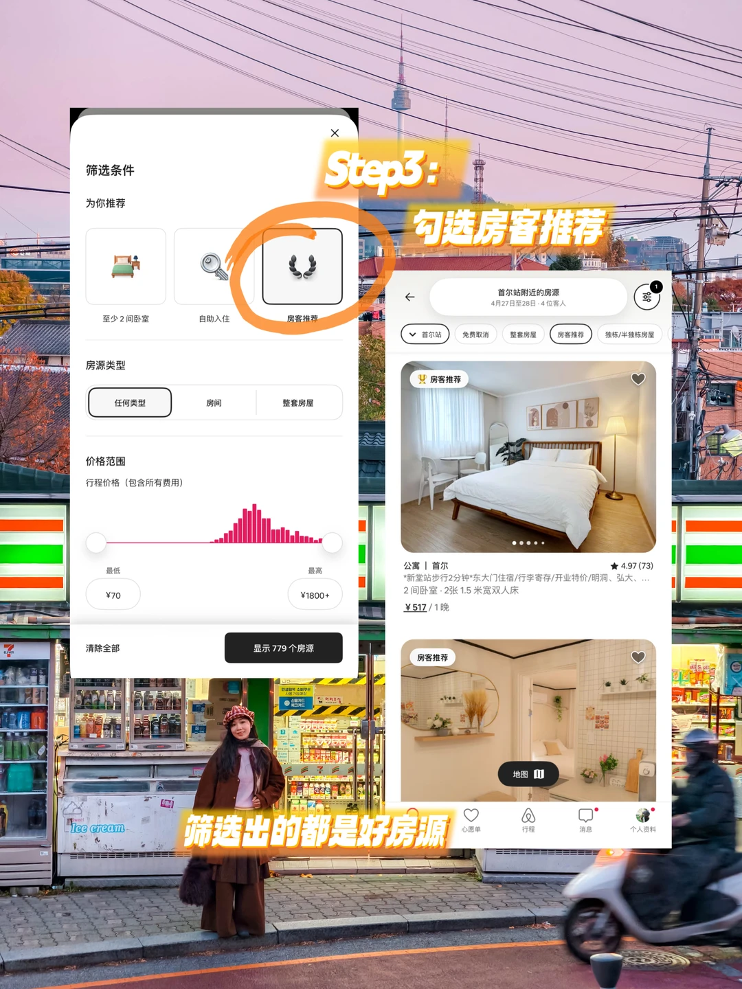 ❶爱彼迎搜索目的地,点筛选勾上「房客推荐」,这个标签的房源是有几百万人验证过的,而且每天动态评分会把有差评或者长时间没人住的房子pass掉,相对会靠谱很多