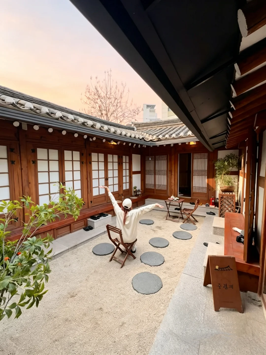 ▫️刚到的时候,朋友还担心韩屋好看但会陈旧,结果房源装修很新很漂亮,木质窗框、复古餐具、洒满阳光的小庭院,还有淡淡的线香味,真的像走进了《请回答1988》,我们在里面拍满了2天!