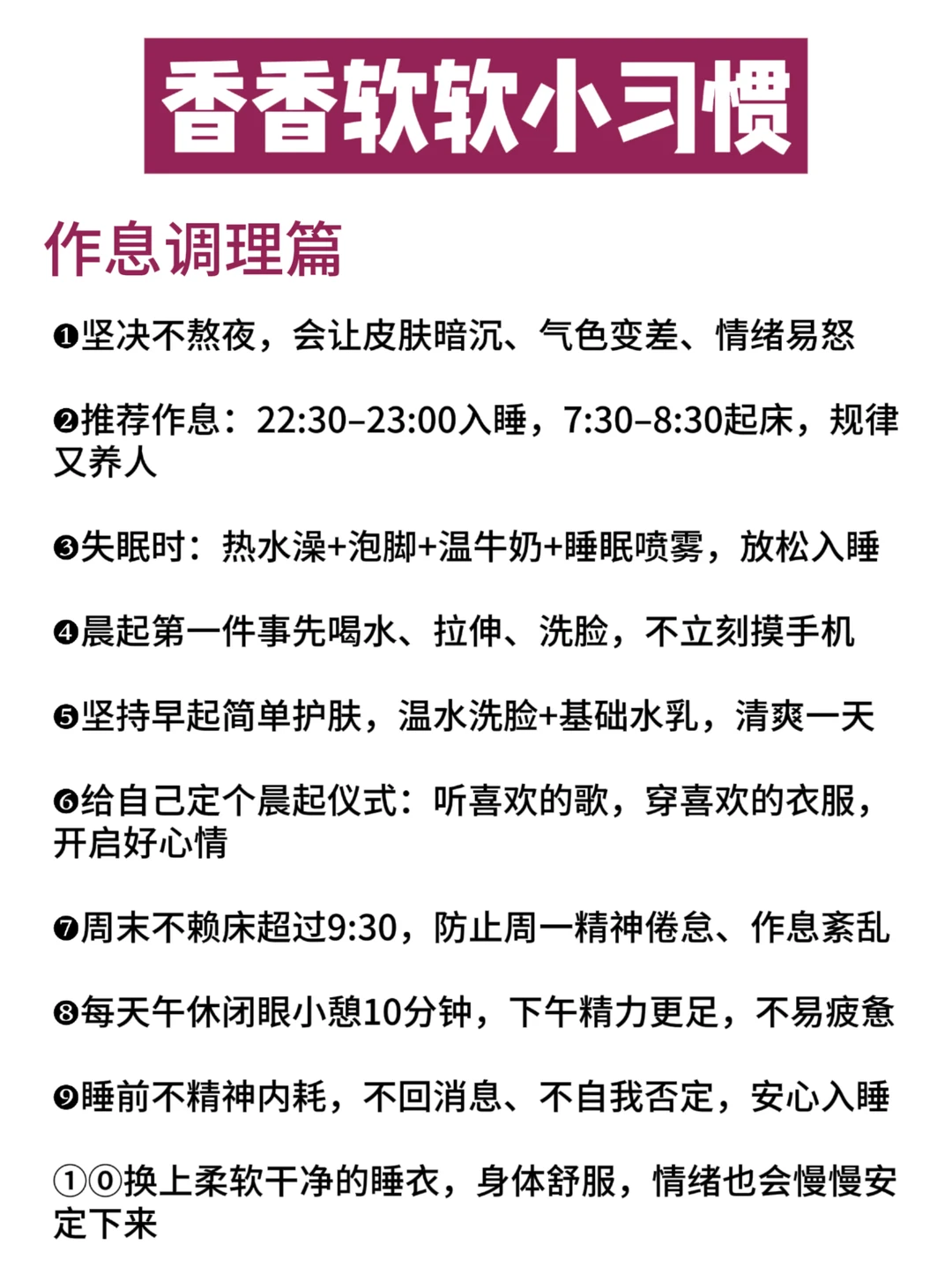 ・偶尔晚睡也没关系,永远保持干净清爽的状态
