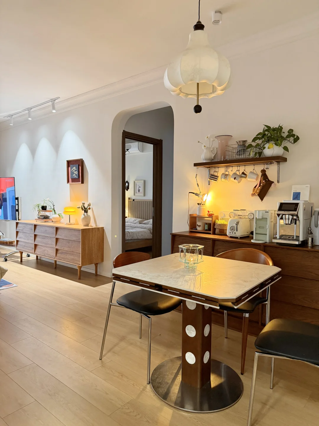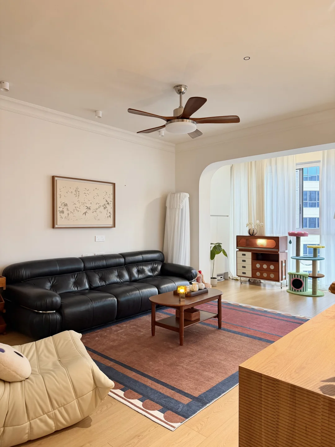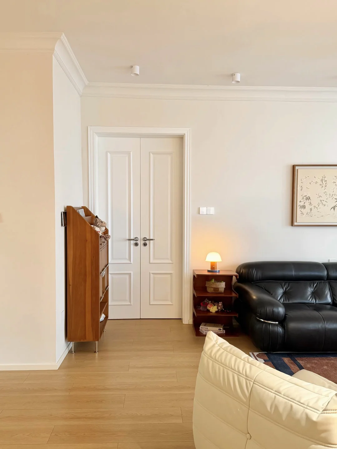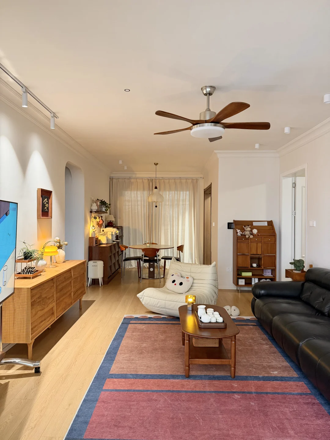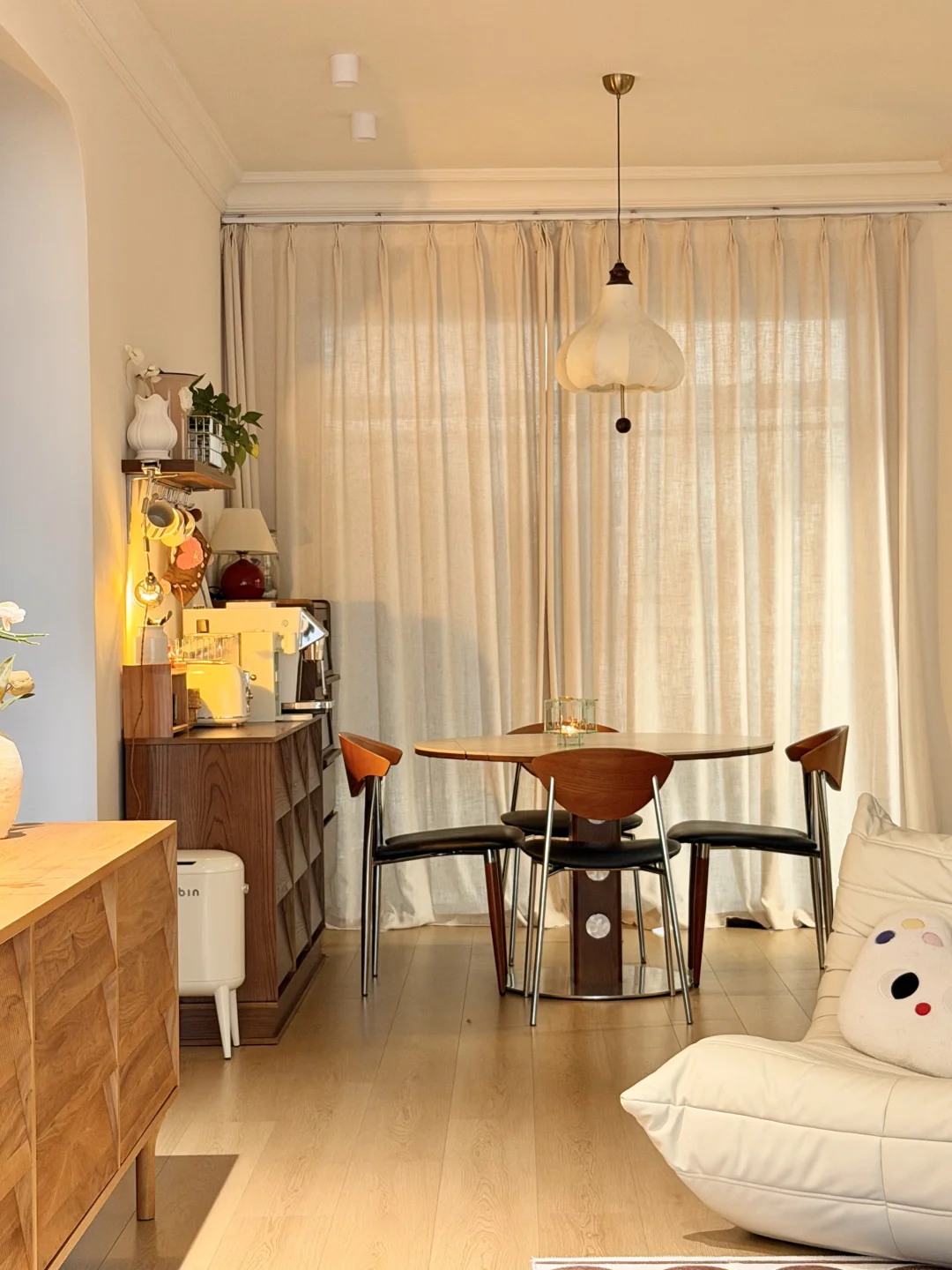 没有复杂的硬装,大面积通刷浅色漆,家具都是⚫️ 🟤⚪️搭配,没想到这样装修的家,会有中古风又带点温馨!