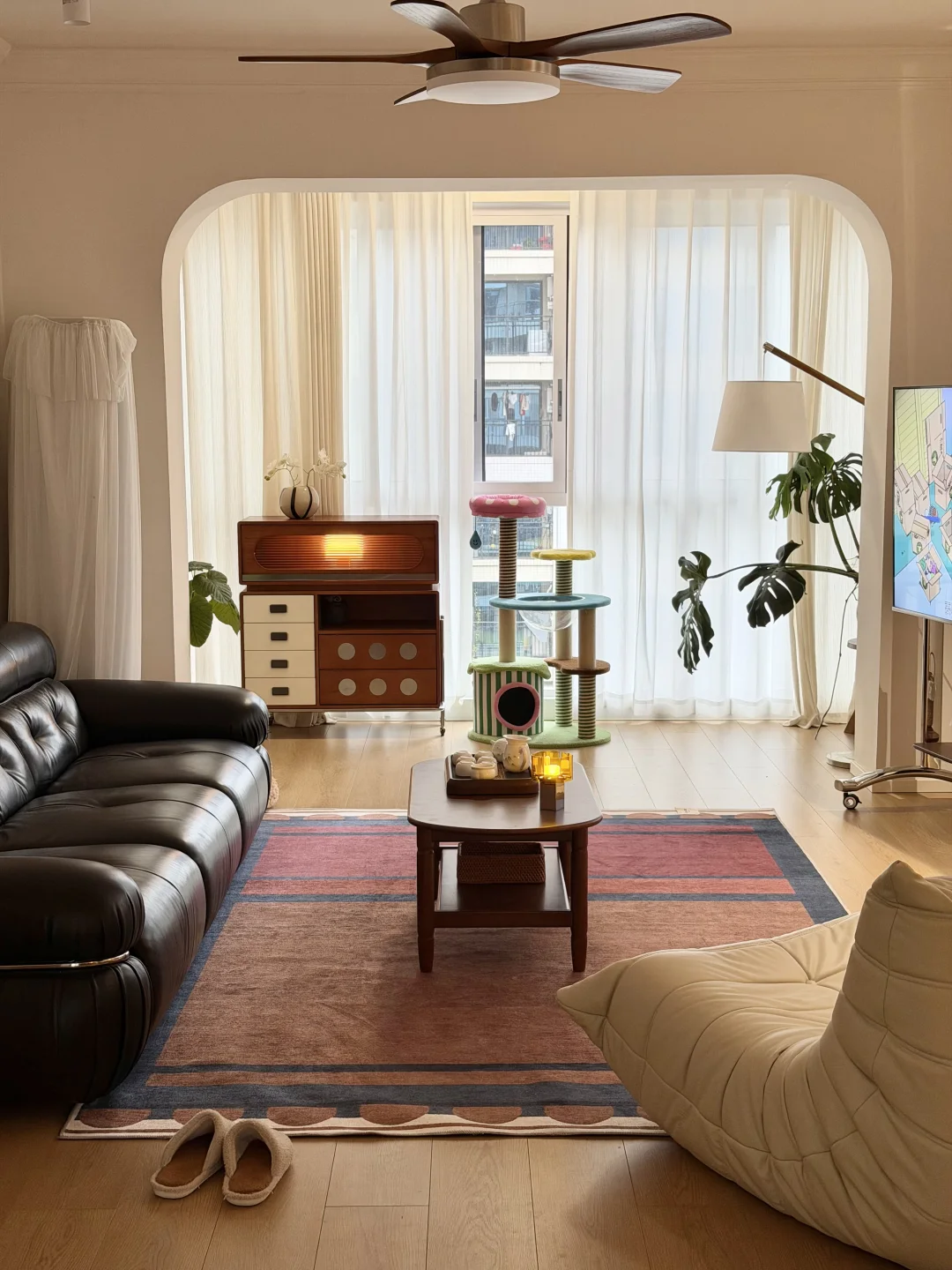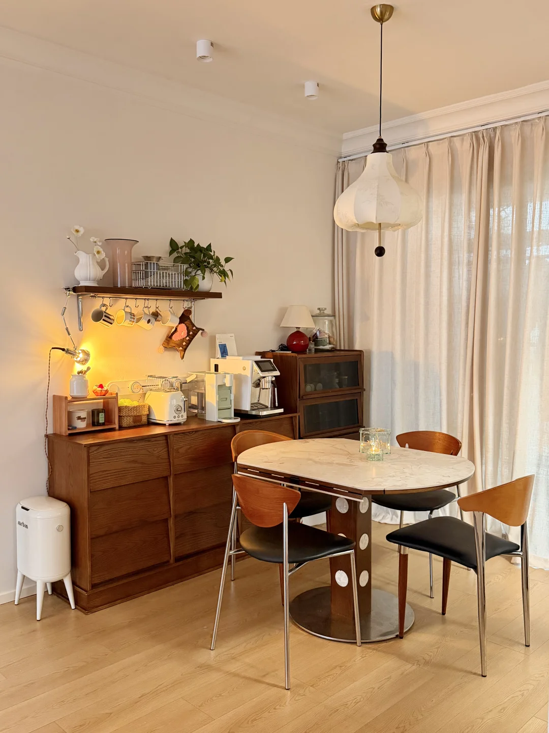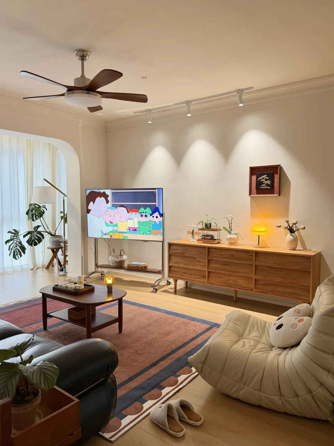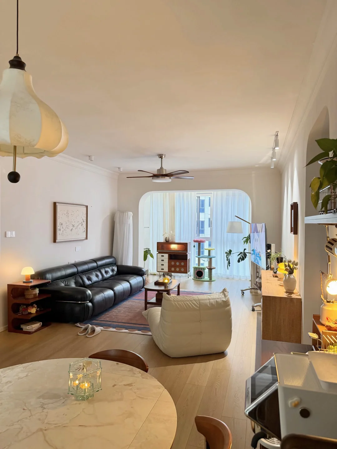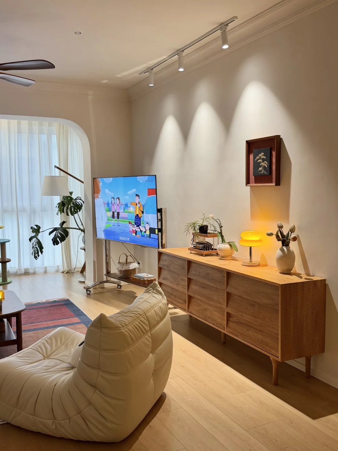 没有复杂的硬装,大面积通刷浅色漆,家具都是⚫️ 🟤⚪️搭配,没想到这样装修的家,会有中古风又带点温馨!