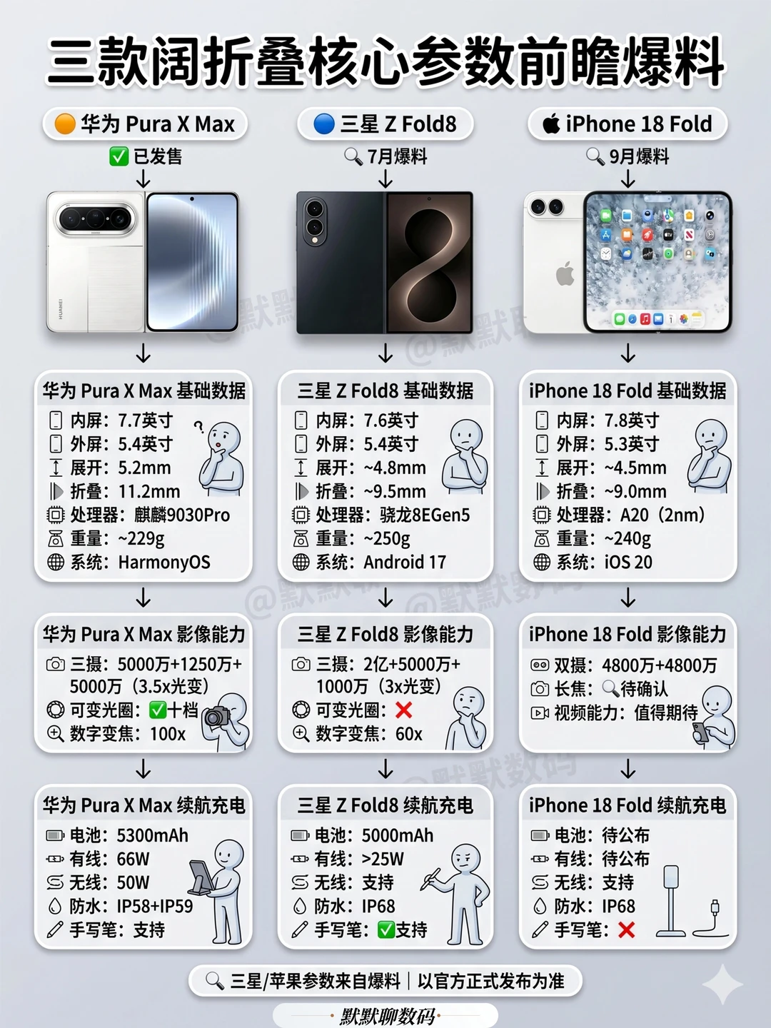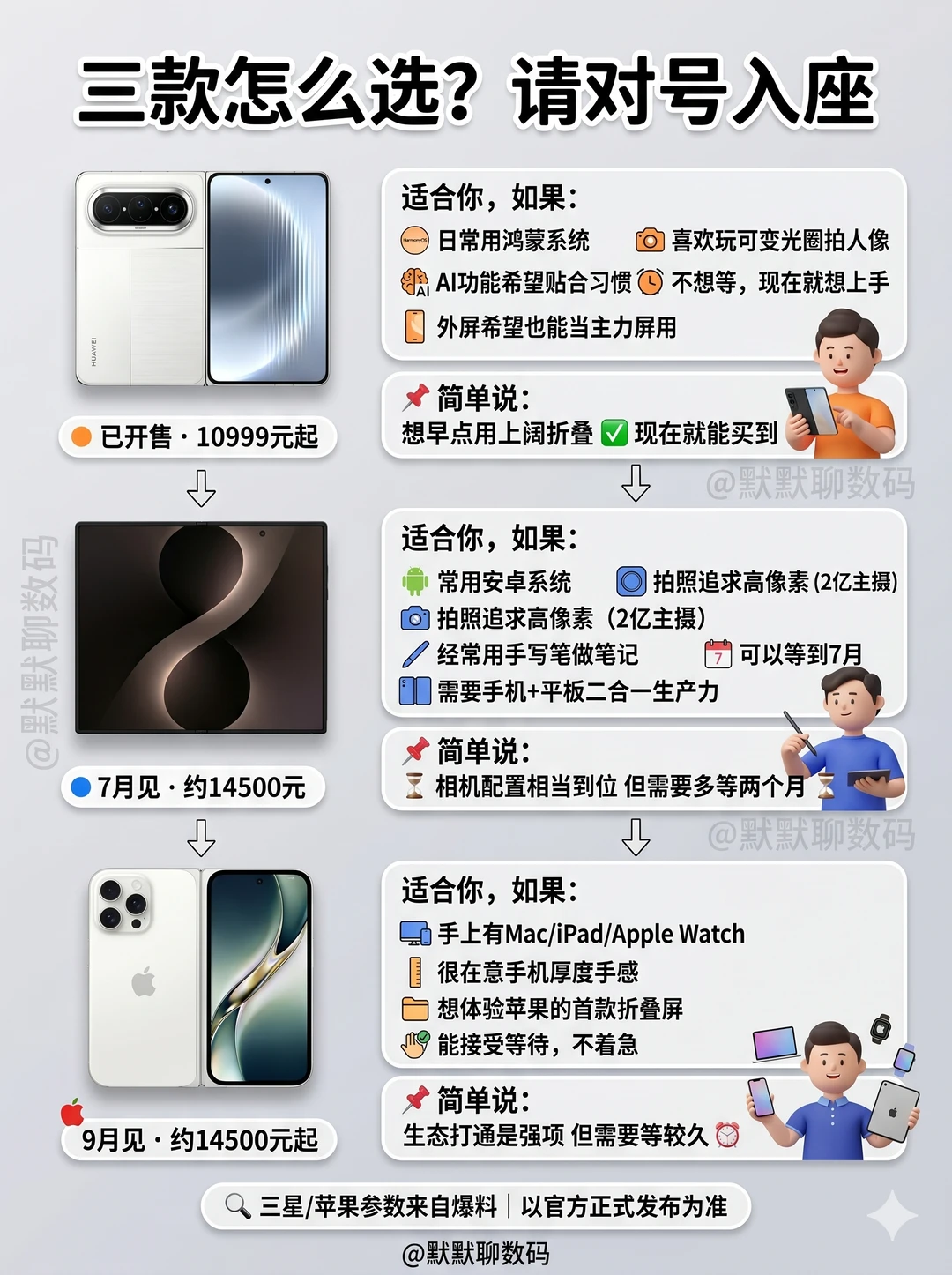 2026阔折叠三强同台!华为已开售,三星7月见,苹果9月来。