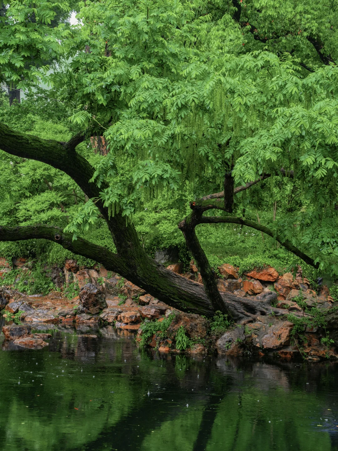 一人在亭里听雨,看着雨点打在水面上,待了好久,啥也不想,挺放松的~