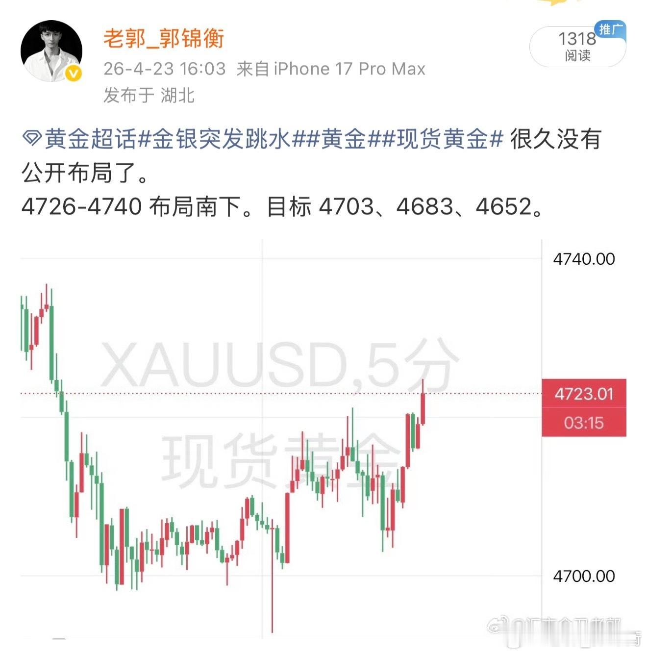 黄金策略黄金金价波动现货黄金黄金 而来到了周四,老郭公开布局南下的列车,目标稳稳