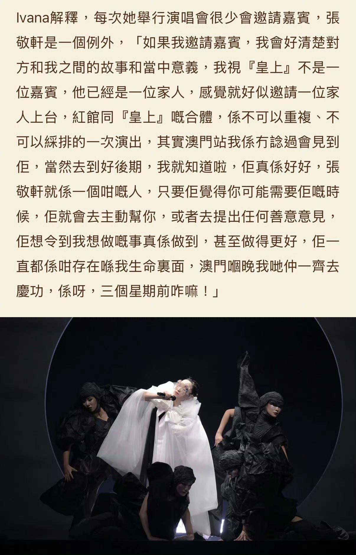 谈及二人情谊,王菀之称张敬轩早已不是普通嘉宾,而是如同家人一般的存在;此前张敬轩红馆、王菀之演唱会澳门站的同台合体演出,是无可复刻、无法排练的珍贵回忆,二人相识相伴超过二十年,早已是彼此生命里立体、实在、值得感恩的灵魂挚友。