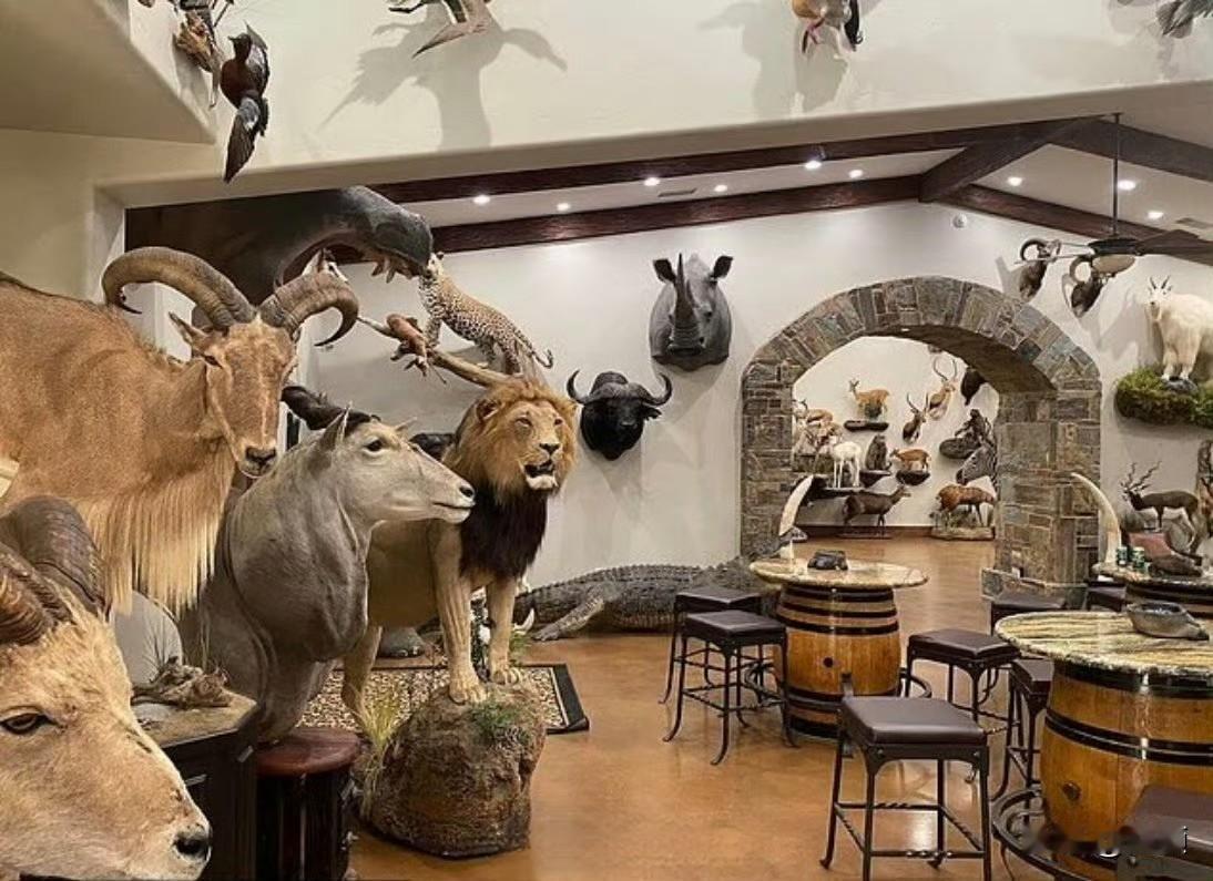据悉,数十年来,多西奥常年在非洲各地狩猎,大象、狮子、犀牛、豹子、野水牛均曾遭其毒手,家中摆满了各类猎物标本。