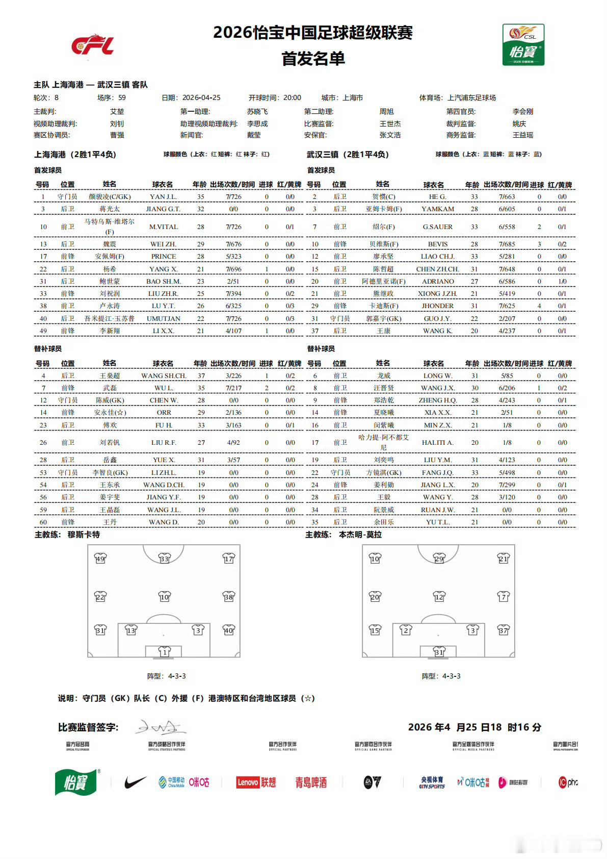 2025年夺冠的赛季,海港在30轮的比赛中,一共才输掉4场球;而2026年赛季,