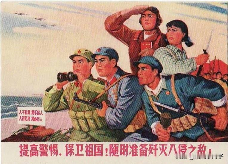 小时候家里的墙上,总贴着几张这样的画报。绿军装、红五星,手握钢枪的战士眼神坚定,“提高警惕,保卫祖国”的大字格外醒目。那时候不懂什么是国际风云,只知道跟着大人念口号,看着画里的解放军,心里满是崇拜和安全感~这些画报、小人书,是我们童年最鲜活的爱国主义启蒙。没有复杂的剧情,却用最浓烈的色彩,把“保卫祖国”四个字刻进了几代人的骨子里~这些画报不仅是时代的印记,更是我们再也回不去的热血童年历史老宣传画 70年代老画 历史老海报