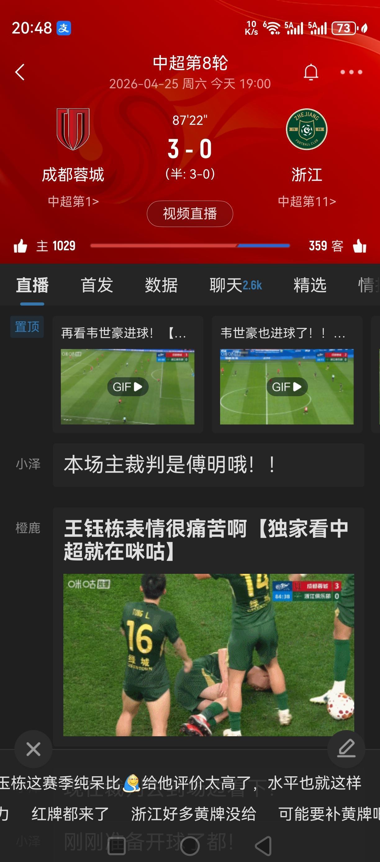 韦世豪推射还有!花了!花了!浙江被打3:0!花了! 蓉城多点开花!浙江防不胜防!
