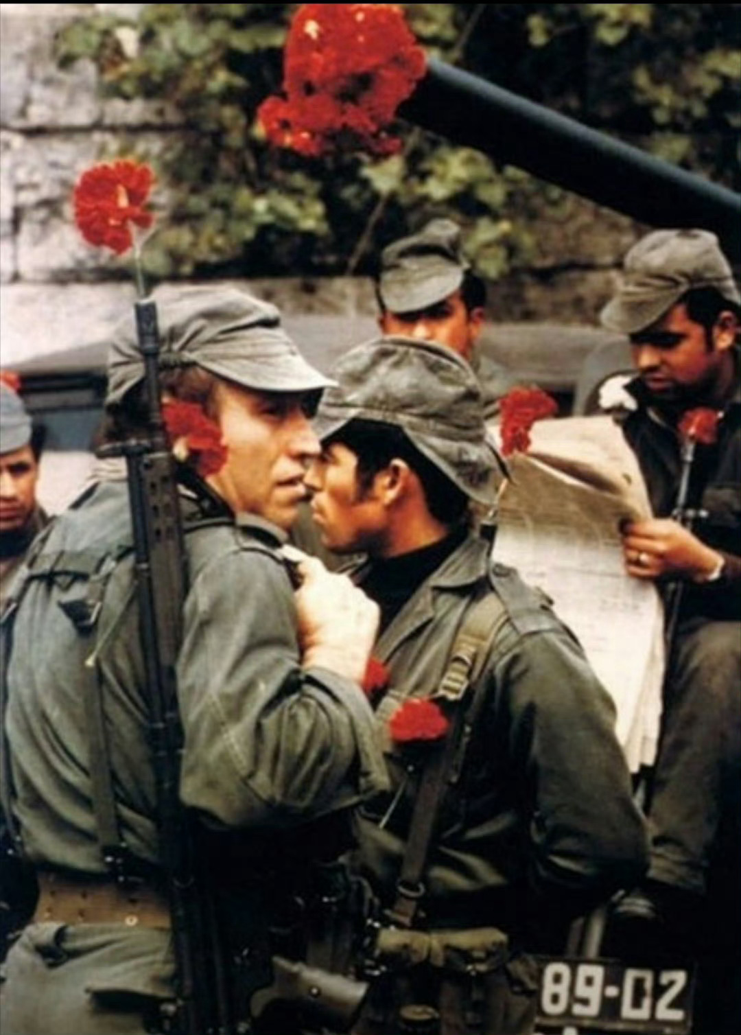 🔥1974年4月25日,葡萄牙共产党人、人民和底层革命爱国军人钉紧了萨拉查法西斯政权棺材上的最后一颗钉子!时间进入到1974年,被“国家联盟”控制的葡萄牙大众对殖民战争深感不满——葡萄牙的反动集团在安哥拉、莫桑比克、几内亚比绍镇压当地人民解放运动。底层军人组建“武装部队运动”(MFA),决意终结嗯这个在欧洲大陆最西端的法西斯政权:这套政权压迫本国人民、操纵民众,不惜流血去奴役其他民族。武装部队运动对里斯本军警镇压机构核心枢纽发动战术突袭,革命全程几乎零流血(仅有4人遭秘密警察PIDE杀害)。民众涌上街头,将康乃馨插满士兵枪口,这便是康乃馨革命。马尔塞洛·卡埃塔诺被迫投降、流亡海外。此后,葡萄牙工农群众掀起大规模民众抗争浪潮,要求推行深刻的社会变革!平凡观世界反法西斯历史上的今天