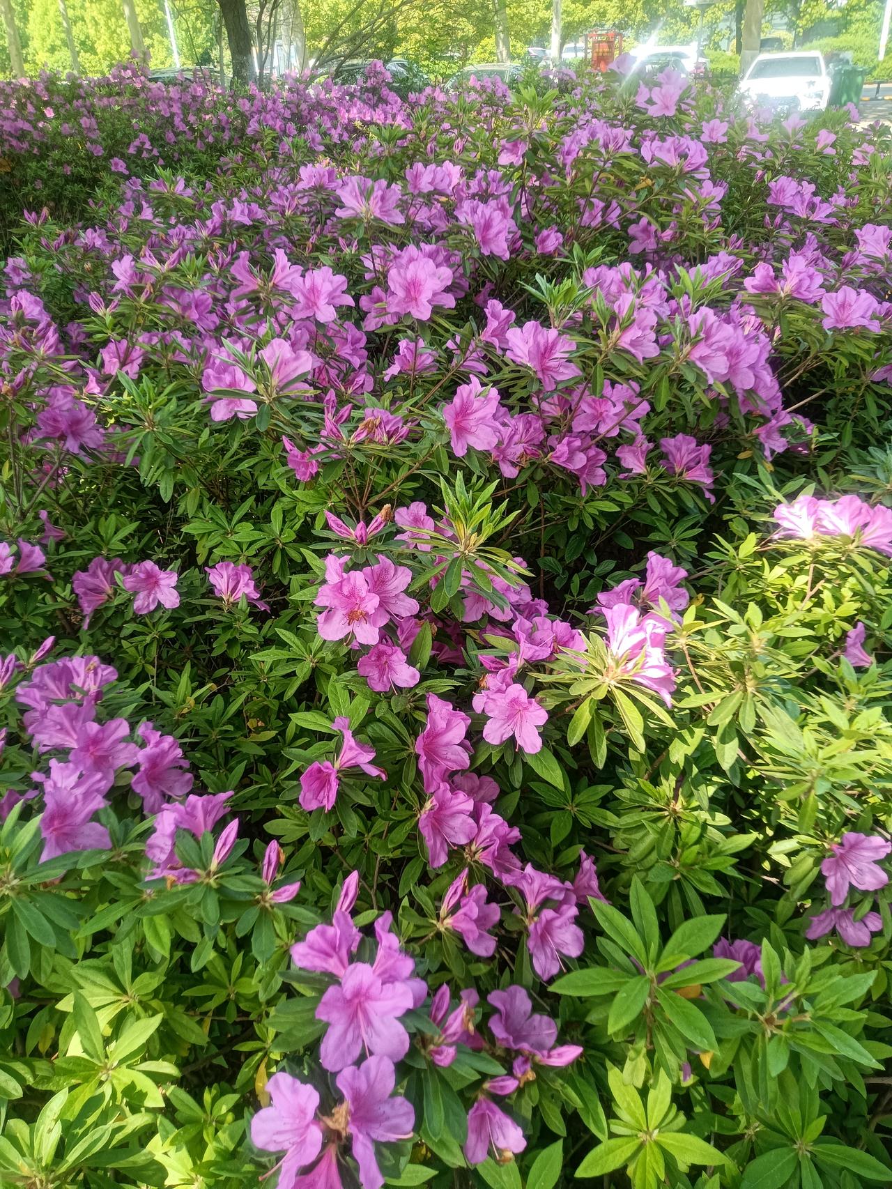 杜鹃花 文/李兴伟 花蕊纤长如线段, 萼片轻薄似绸缎。 繁花尽绽连成片, 粉艳娇