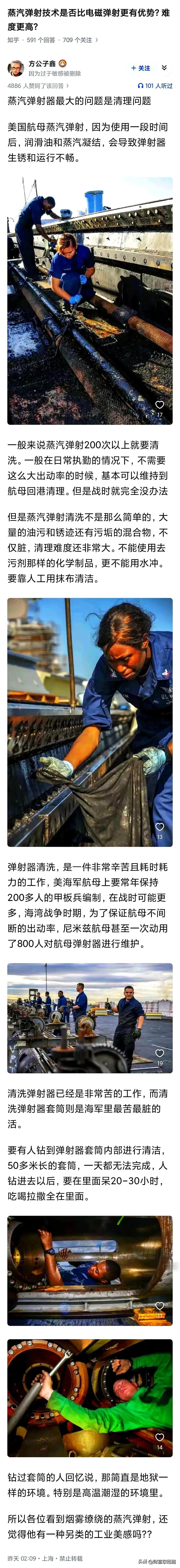 有网友调侃:维护蒸气弹射,只需要几百文盲拿抹布、喷枪就行了。
