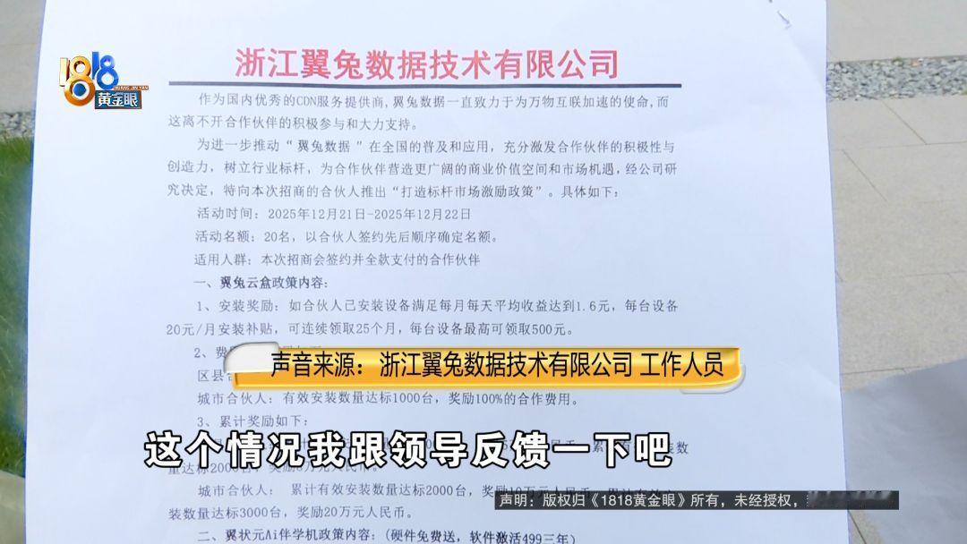 新式割韭菜!江苏一男子,砸了60000元加盟代理某款机顶盒,本以为每天躺着就能赚取流量收益。结果不仅设备被三大运营商全面限流封杀,每天收益只有可怜的几毛钱,上门维权时这家公司竟以停电检修为由直接关门跑路。网友:这哪里是带你赚钱,分明是拿那些让人听不懂的科技词汇来割你的韭菜。