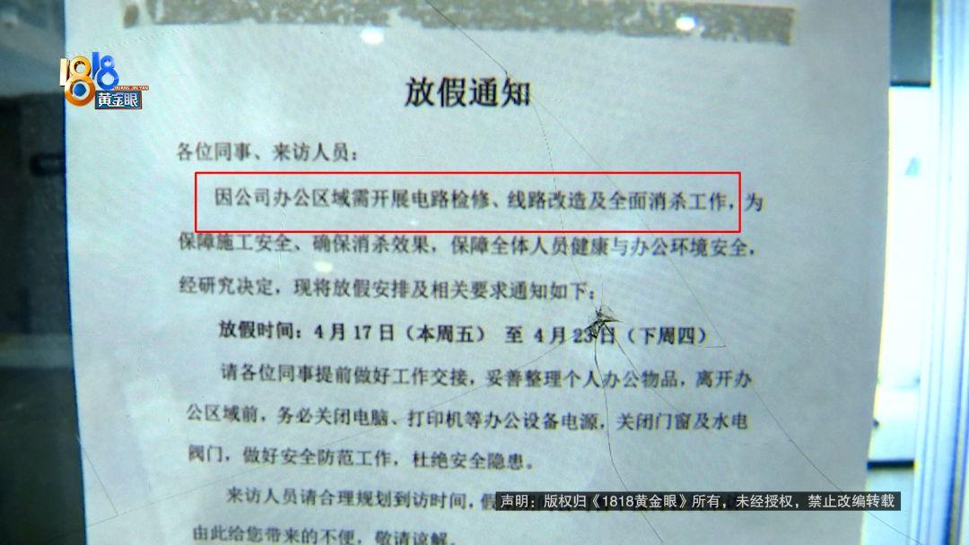 谁知第二天一早孙先生赶到时,公司大门紧闭,门上贴着一张极其敷衍的放假通知。