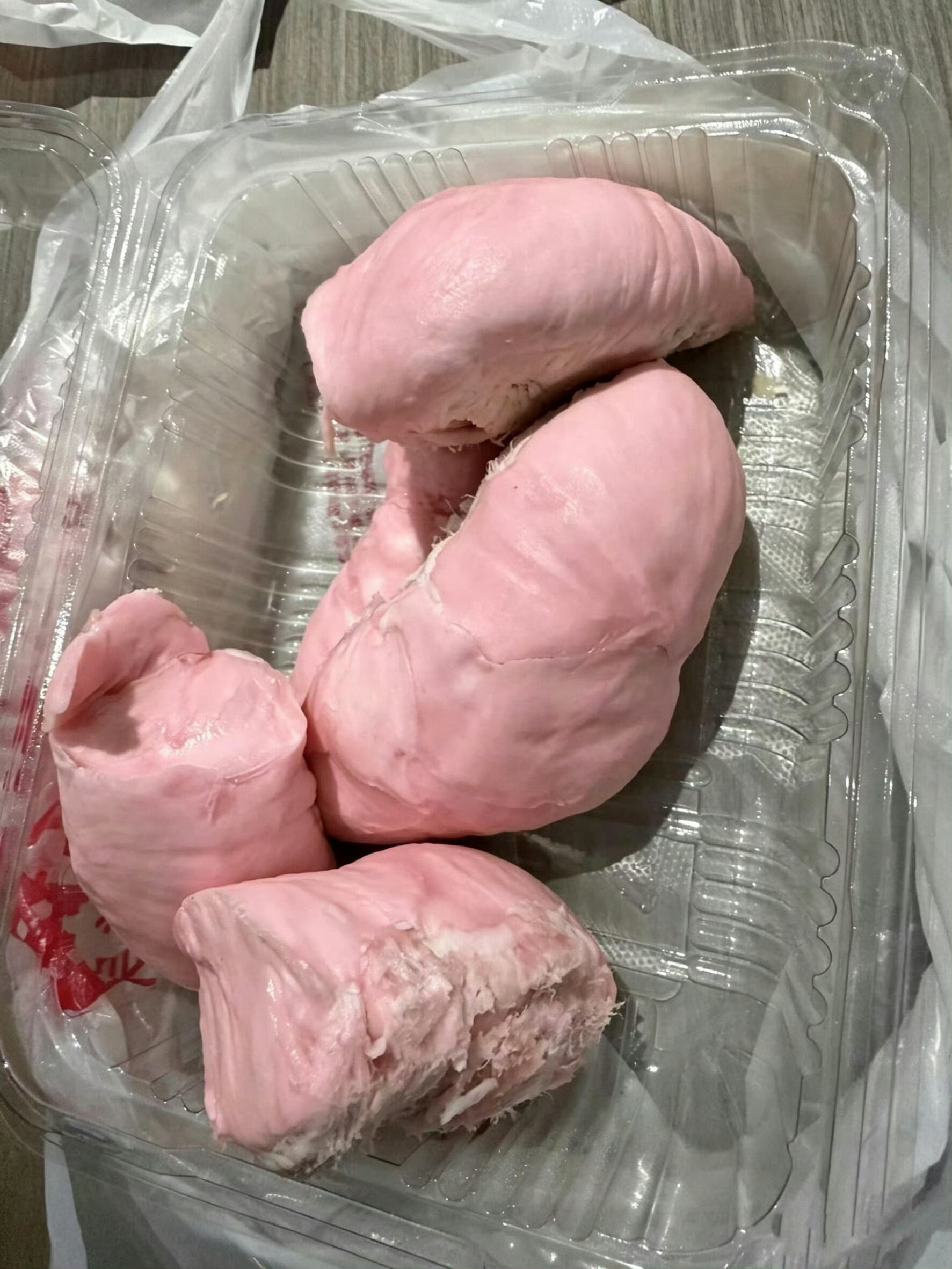 粉色榴莲没吃过,但粉色乍一看好像内脏啊一个不爱吃动物肝脏的人瞬间没有食欲,还是喜