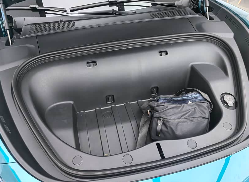 2. 车内空间不足,家庭用户吸引力不够。它的前后备箱空间确实较大,后备箱可以叠放4个27英寸行李箱,下层空间还可以至少放一个20英寸行李箱,前备箱可以加装个不小的冰箱,这块前备箱和后备箱空间确实是该车的主要亮点。
