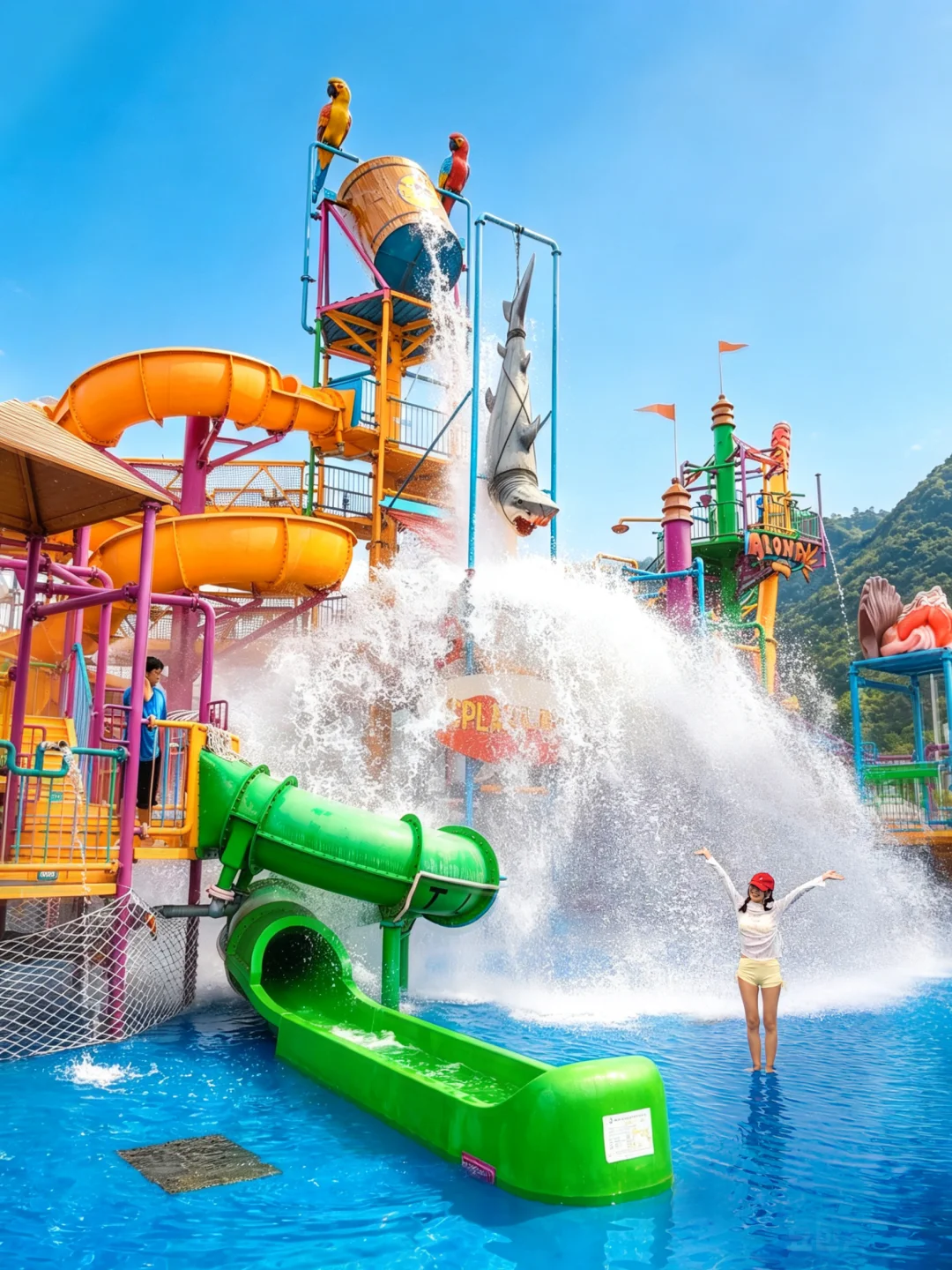 5.1全新开园,主打浓郁泰式风情,既有适合小朋友游玩的梦幻水寨,也有时空穿梭、螺旋冲刺等惊险滑道项目!飓风湾造浪场地,搭配白沙滩氛围感十足🏖️开园期间还有电音派对、水上飞人、火把秀、傣族舞蹈、泡泡秀等超多演艺活动,热闹又好玩~