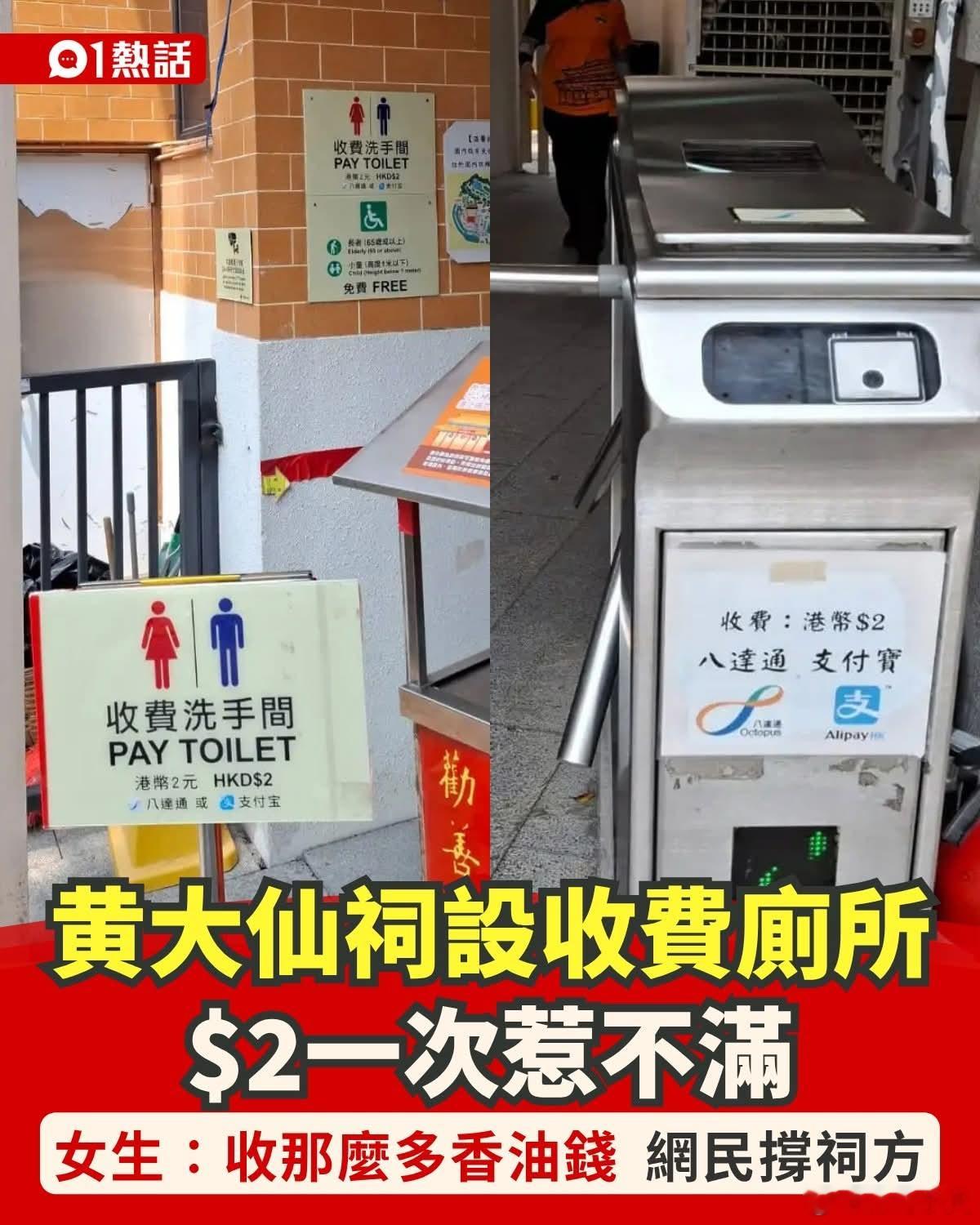 香港寺庙设2元收费厕所,小红薯女生不满,网民支持收费香港01报道,有女生近日于小红薯发文,发现香港的黄大仙祠设有收费厕所,每次进入使用费为2元,不满道“黄大仙(祠)1年收那么多香油钱,还要搞这样的收费,真是开了香港先例!”。网民就留言指出明码标价,使不使用也是丰俭由人,“黄大仙庙的运营社团是啬色园,是慈善社团,多谢你的捐献,明码标价还好”,有网民指,“有免费厕所你不用,系要针对人家厕所收费”,楼主回复道“我目的是告诉内地人知道,这里要收费,最好找地方解决了再进去”。其他网民也表示没问题,“私人地方有权定价,消费者都有权选择去或者不去”、“入口明码标价,你不想上就去远啲”、“香港周街厕所,连2蚊都不想给就走远点”。粤港澳大湾区什么东西既封不住也拿不走