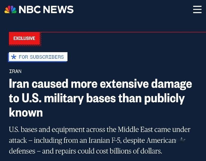逆天美军牛逼空防,让IRAF凌空轰炸美军基地美国官员透露,斋月战争期间,伊朗空军/革命卫队空军多次实现对美军资产的空袭,其中在战争开始初期,伊朗空军F-5“虎”式战机成功突破拦截空袭轰炸过科威特的美国军营,造成了美军阵亡。这架F-5的后续美国人没提,那就是活着回去了。另外,两架伊朗空军Su-25攻击机低空飞跃霍尔木兹海峡空袭了卡塔尔的美军基地。这两架苏-25完成了FAB的投放,命中了美军基地,在返航过程中被卡塔尔/美国空军截杀。加上苏-24空袭导致3架F-15E的损失,伊朗空军的表现远超战前大家的预估。打出过焦剑/弓3/H99的伊朗空军,还在继续他们的传奇,这一次的背景板是天下无敌的美国空军。