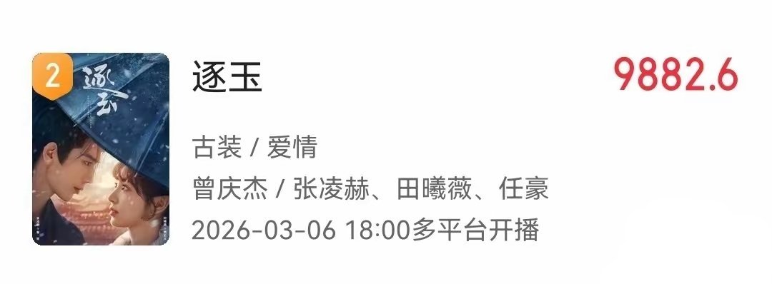 第二名 《逐玉》主演: 张凌赫、田曦薇、任豪