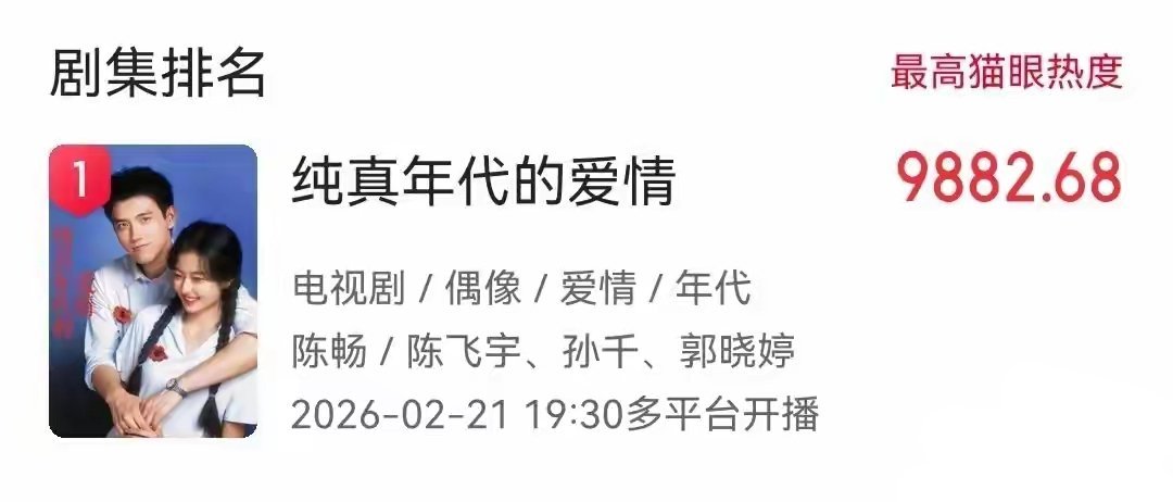 26年已播剧热度前六名!
