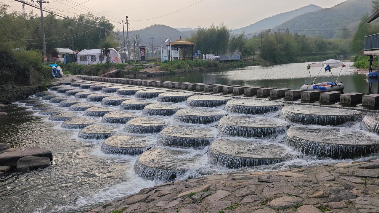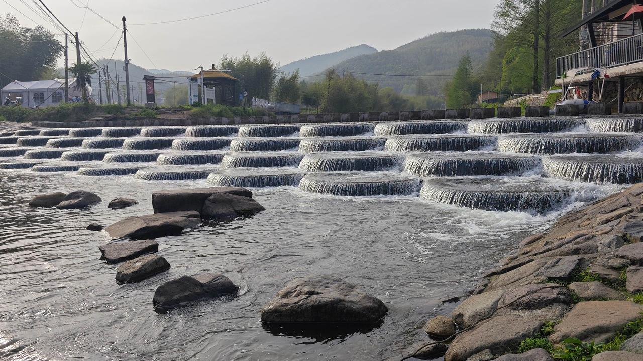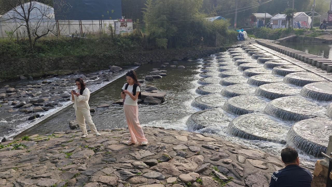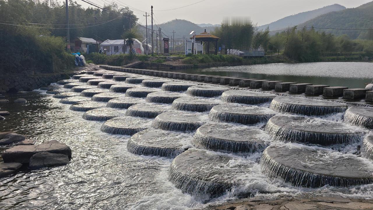 傍晚的鱼鳞坝最有味道。游客渐渐散去,溪水恢复了轻柔,夕阳把坝体染成暖橙色,远处的竹林渐渐隐入暮色 。坐在坝边的石头上,吹着晚风,听着溪水声,突然懂了为什么这么多人偏爱这里——它没有过度商业化的喧嚣,只有自然的本真和人文的温度,像一本翻不腻的江南小书,每一页都藏着惊喜 。