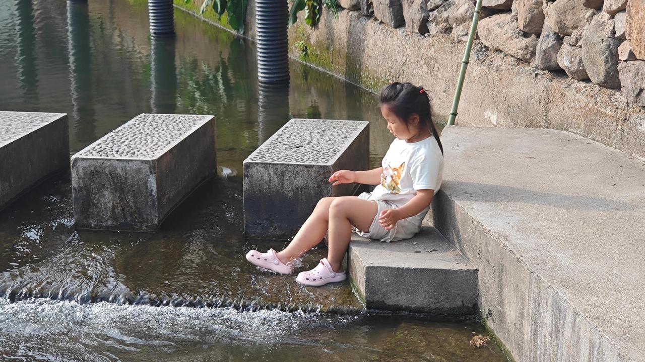 坝上是热闹的,坝下是温柔的。浅滩区的水刚到脚踝,光脚踩上去,溪水带着山泉水的凉,从脚趾缝溜过,小鱼苗偶尔蹭过脚背,痒得人直笑。孩子们举着水枪追跑,大人坐在坝边的石阶上,看阳光把水面染成碎金,听着周围的欢笑声,连手机都懒得拿出来拍——因为此刻的画面,比任何照片都动人 。