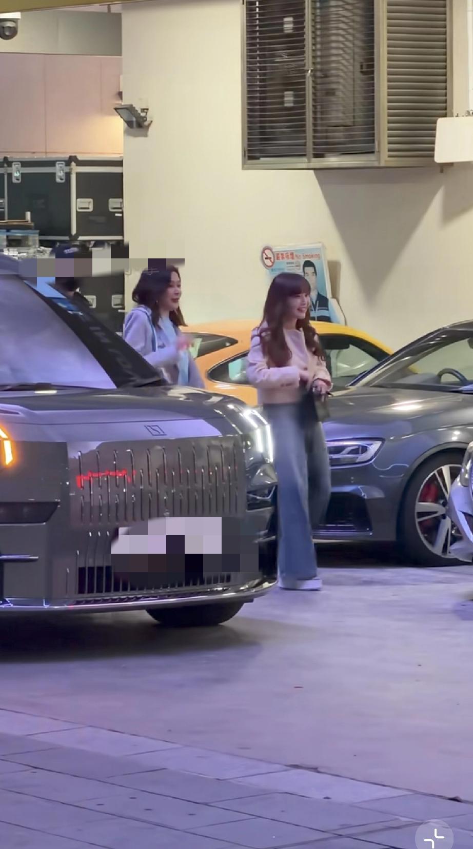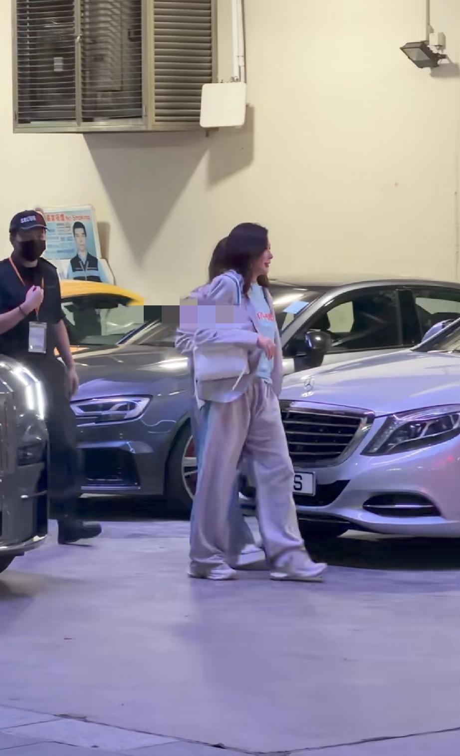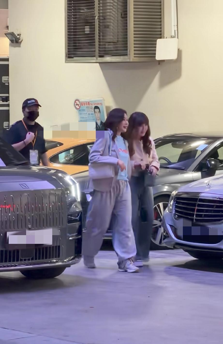 关之琳与一位美女朋友坐着专车到达红馆,她穿了一身灰色的休闲运动服,个子挺高的。