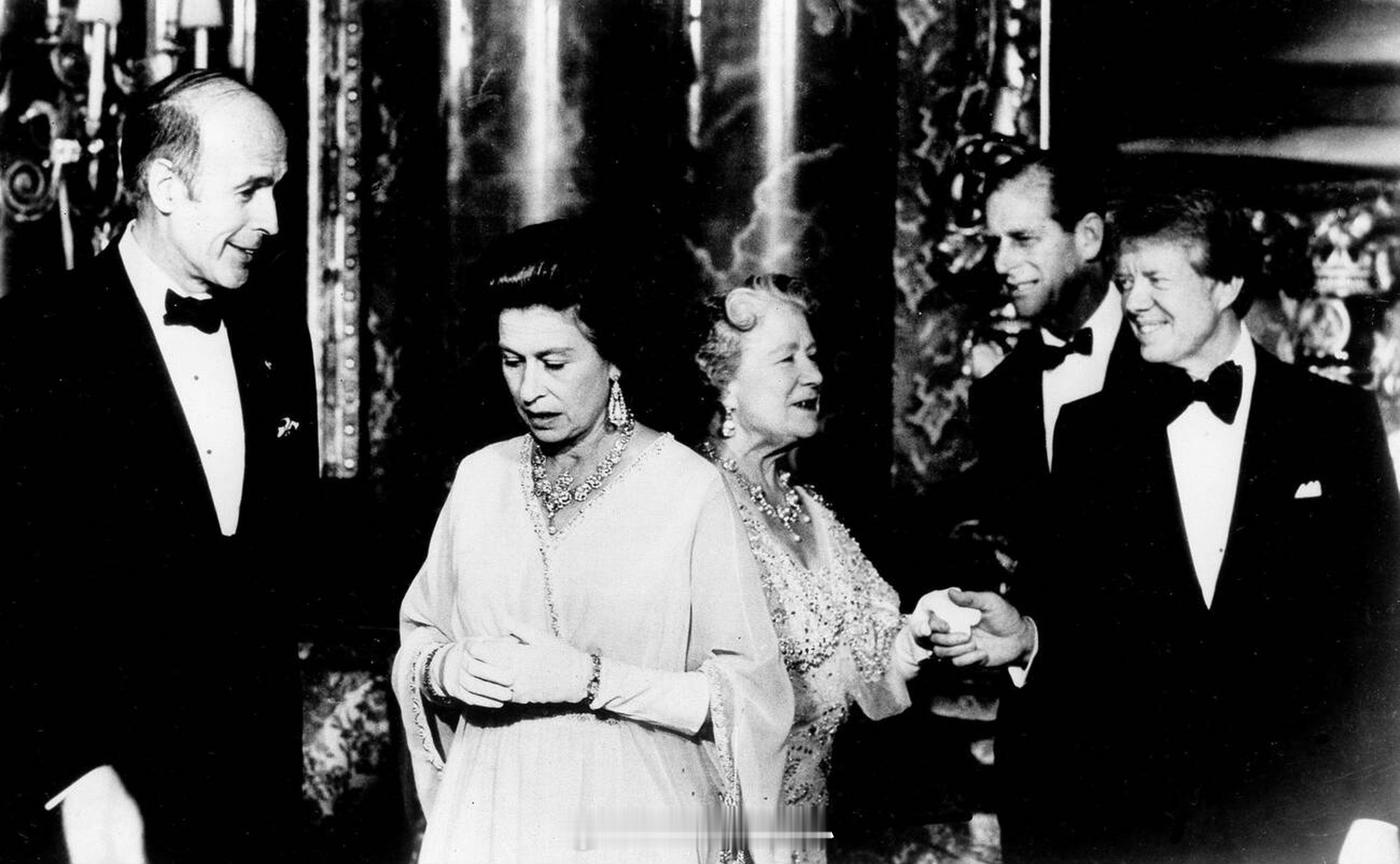 英国王室 1977年5月7日,伊丽莎白二世女王在白金汉宫主持G7峰会晚宴。她那