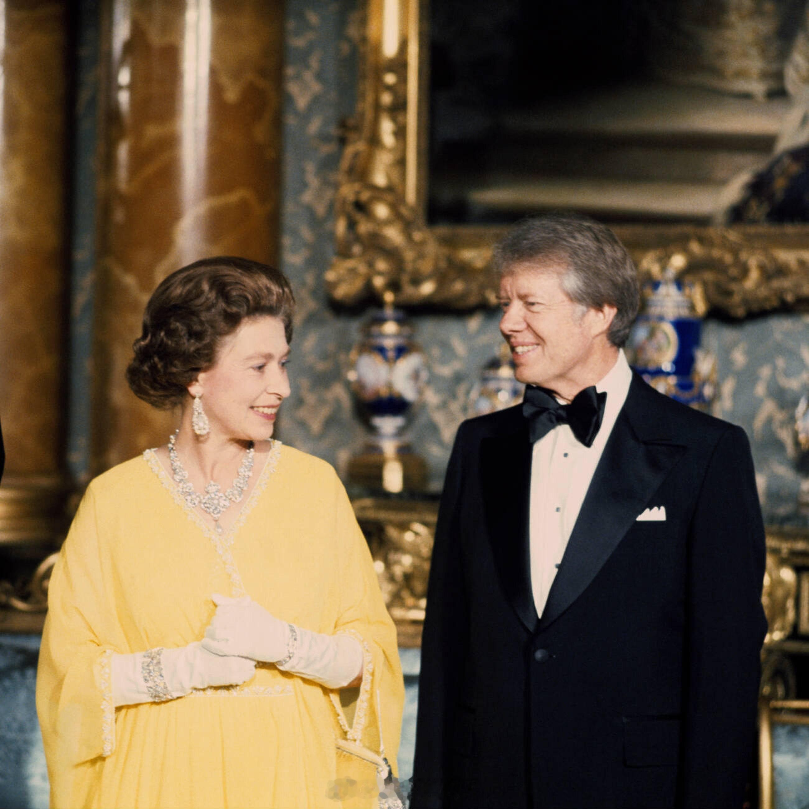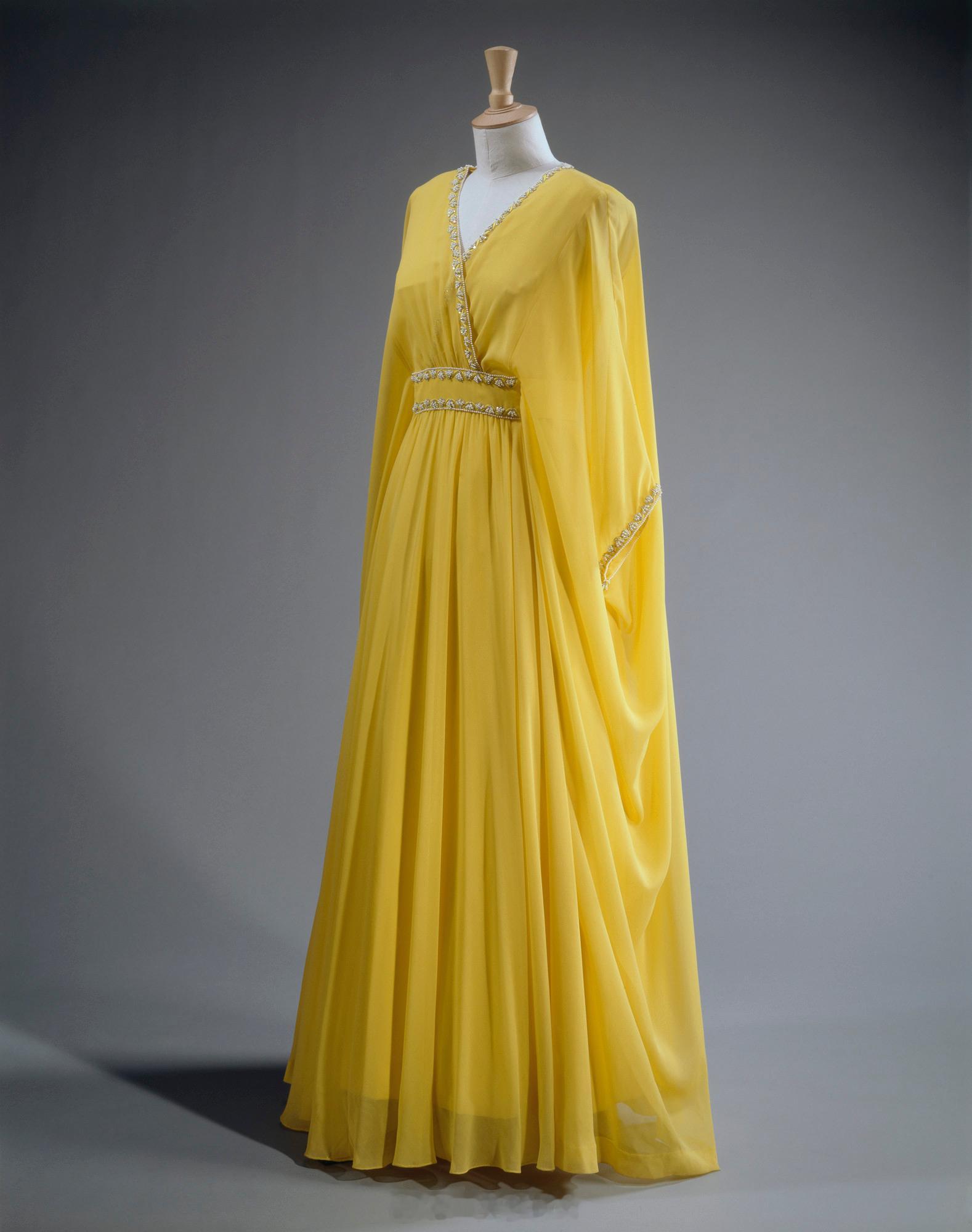 1977年5月7日,伊丽莎白二世女王在白金汉宫主持G7峰会晚宴。她那时候穿的鹅黄色晚礼服是Hardy Amies设计,曾在七十年代穿过3️⃣次,目前陈列在白金汉宫国王画廊。