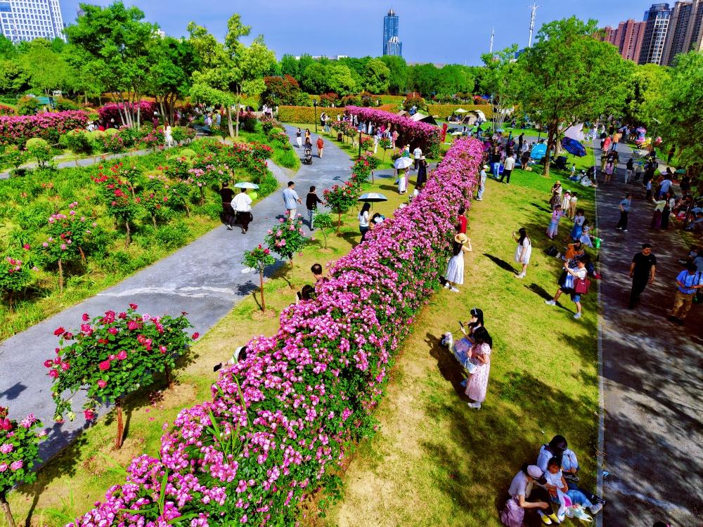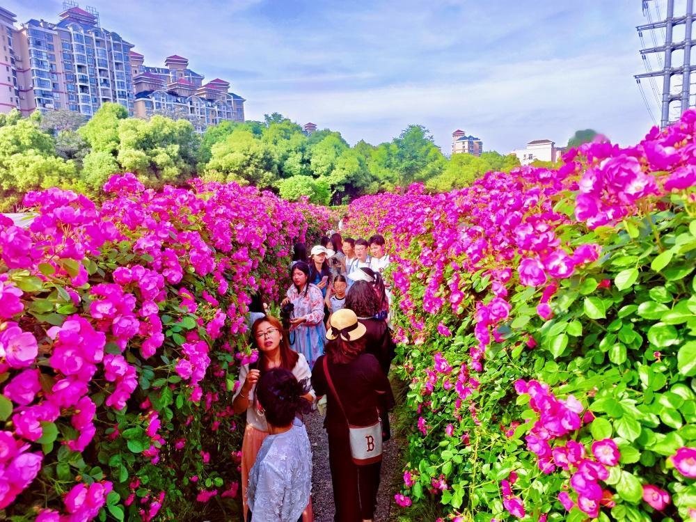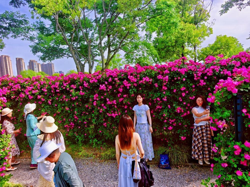 【金银湖月季园成网红打卡热地】最美人间四月天,金银湖月季花园迎来盛花期,成为当下武汉最火的网红打卡地。作为武汉最大的月季专类花园,园内5万余株、108个品种的月季竞相绽放,花廊蜿蜒、花墙如瀑,花香沁人心脾。市民游客穿梭花海,驻足拍照,尽享春日浪漫。交通指南:地铁: 6号线金银湖站D口出,步行约1公里。公交: 乘207路、216路、589路、H100路至金山大道金银湖路站,步行约300米。湖北春天奇遇记