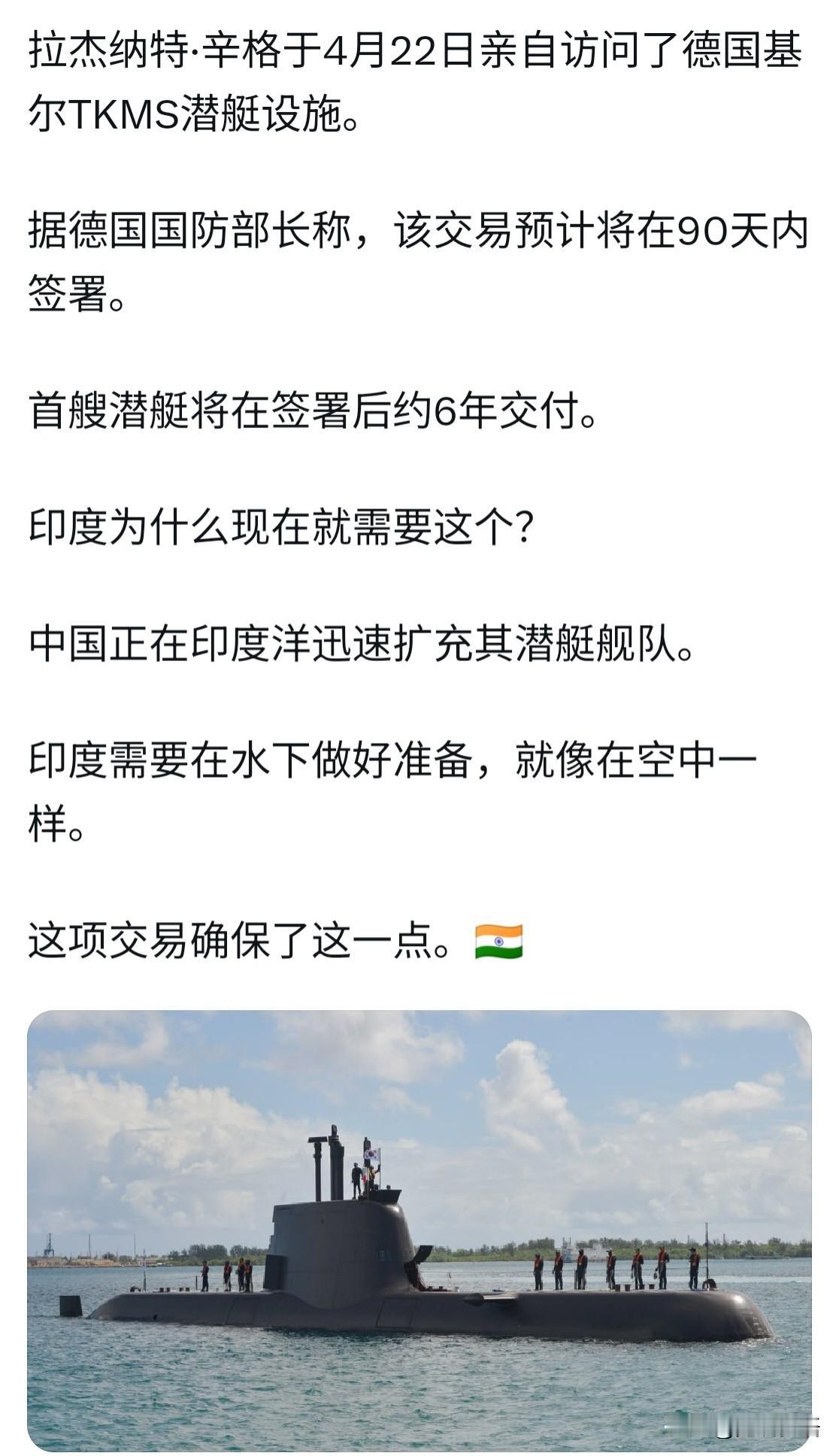 辛格访问德国后,三哥那边传回了喜讯,说是买到好东西了,那就是斥资80亿美元采购6艘德国214型潜艇,他们认为从今以后在大洋之中便可“无惧挑战”。