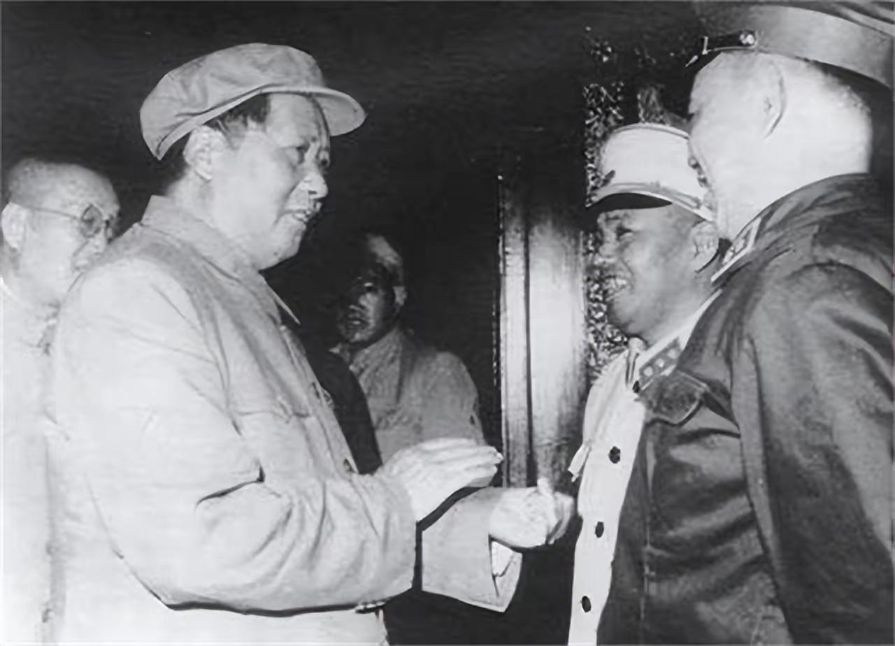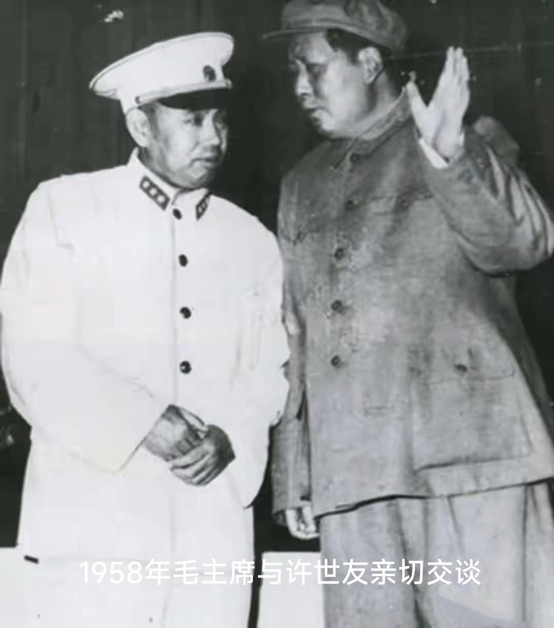 这是一张不多见的照片。许世友和毛主席在一起时,都是穿着军装的照片,这也表现了许世友要做一个毛主席的好兵,要做一个毛主席的好战士。