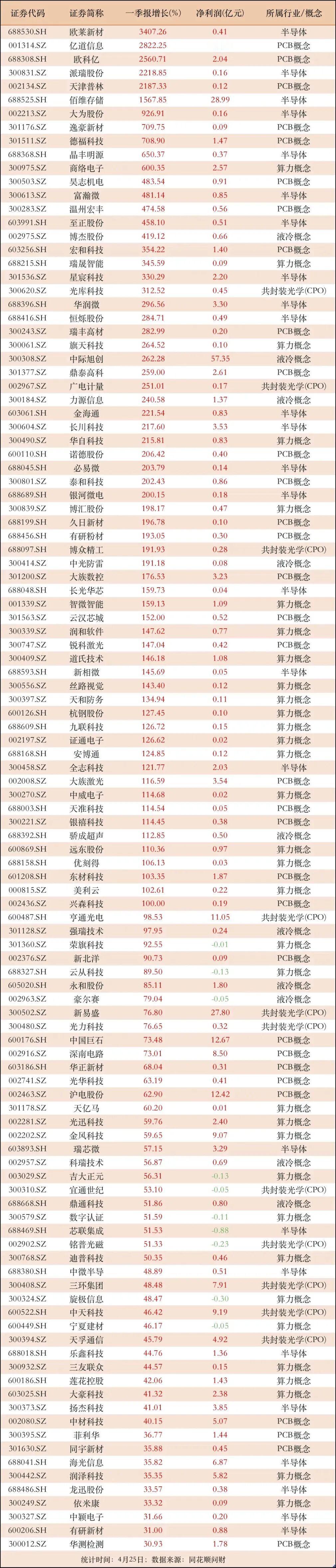 数据说话!科技赛道一季报高增长TOP榜,最高增速超3400%。一季报高增长名单新鲜出炉!半导体、PCB、算力、液冷等AI科技赛道集体爆发,不少个股净利润同比暴增超百倍,高景气度一目了然。这份业绩超预期的核心标的清单,附净利润与行业标签,帮你快速锁定市场主线。