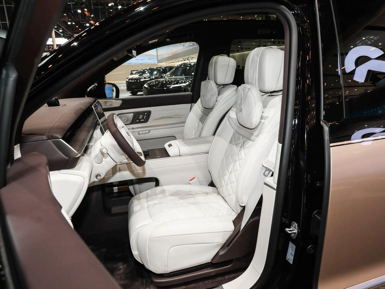 ES9六座版后排两个飞航零重力行政座椅,椅面长达2.3米,全身42点按摩,还有行业首创的20点足底按摩。后排门板阵列式LC智能隐私调光玻璃是目前变色最快的,一键从透明变磨砂,商务接待私密性拉满。智能行政中岛还带专属磁吸茶台和隐藏桌板,开会、喝茶、处理公务都能搞定。