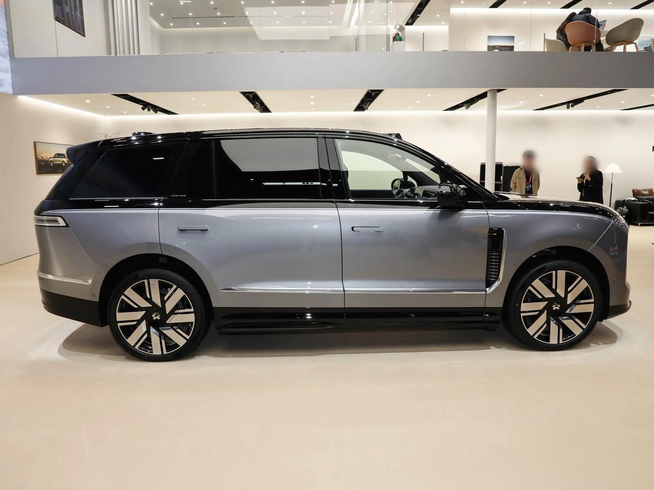 ES9全场最长——车长5365mm,轴距3250mm,比问界M9和理想L9都大一圈。前脸用了Double-Dash晶钻日行灯,车灯里面6826个切割面在光下闪得很高级。头顶三个激光雷达,侧翼子板还有激光雷达,一看就知道智驾硬件堆满了。