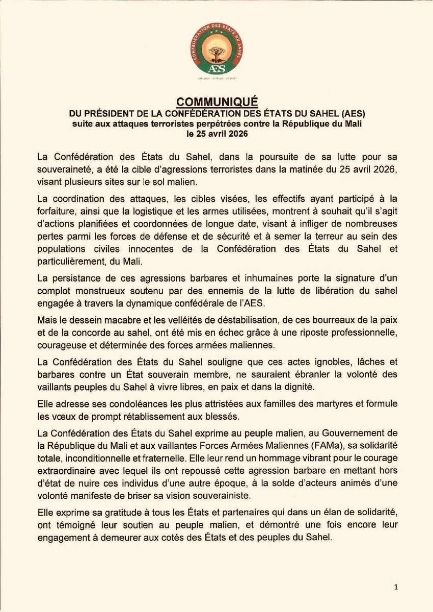 🌍 萨赫勒国家联盟强调:针对一个主权成员国所犯下的这些卑劣、怯懦且野蛮的行径,
