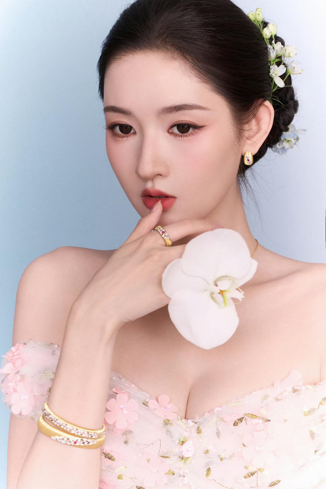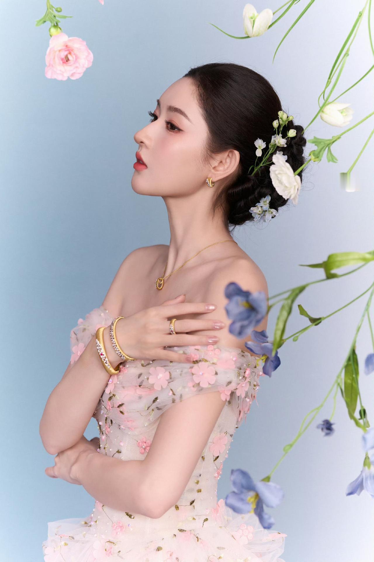 王玉雯一字肩花朵长裙王玉雯苏州活动状态救命!王玉雯这一身是从油画里走出来的吧?