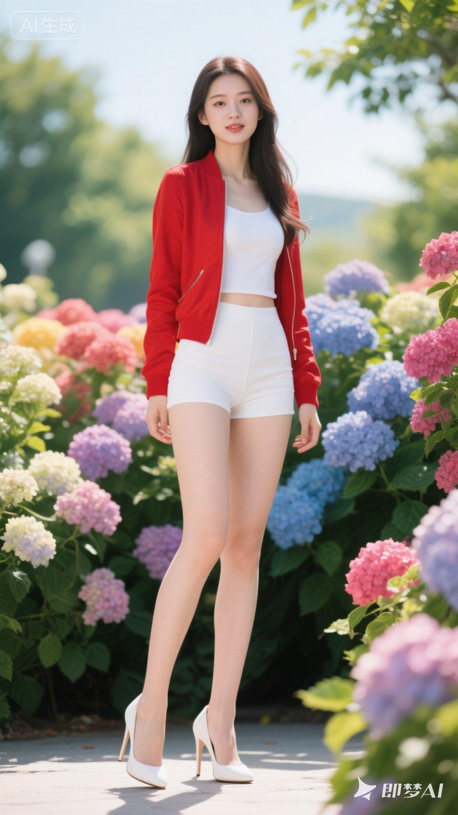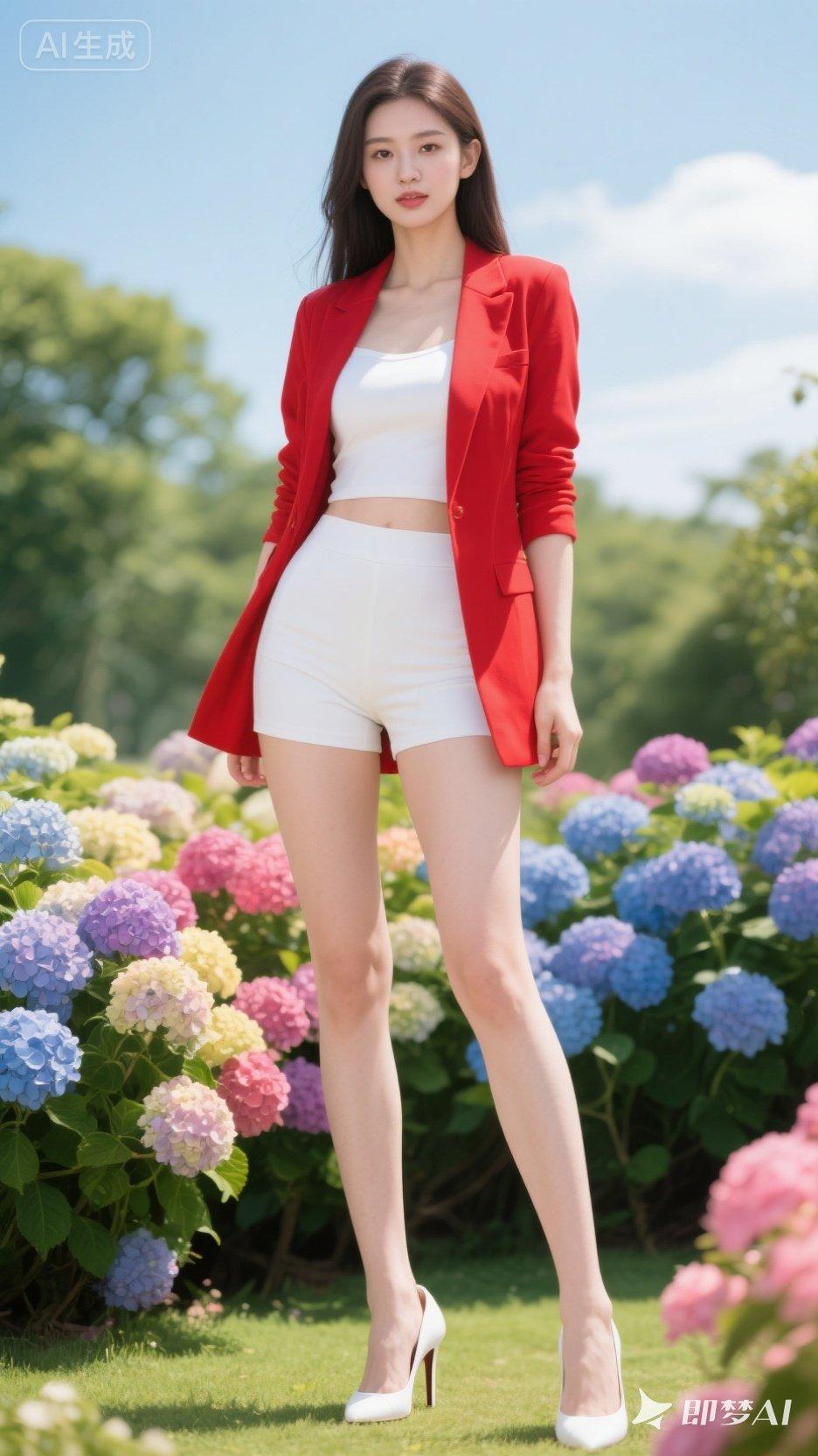 夏日穿搭指南:红衣白裤,搭配高跟鞋,绽放花园中的优雅魅力。